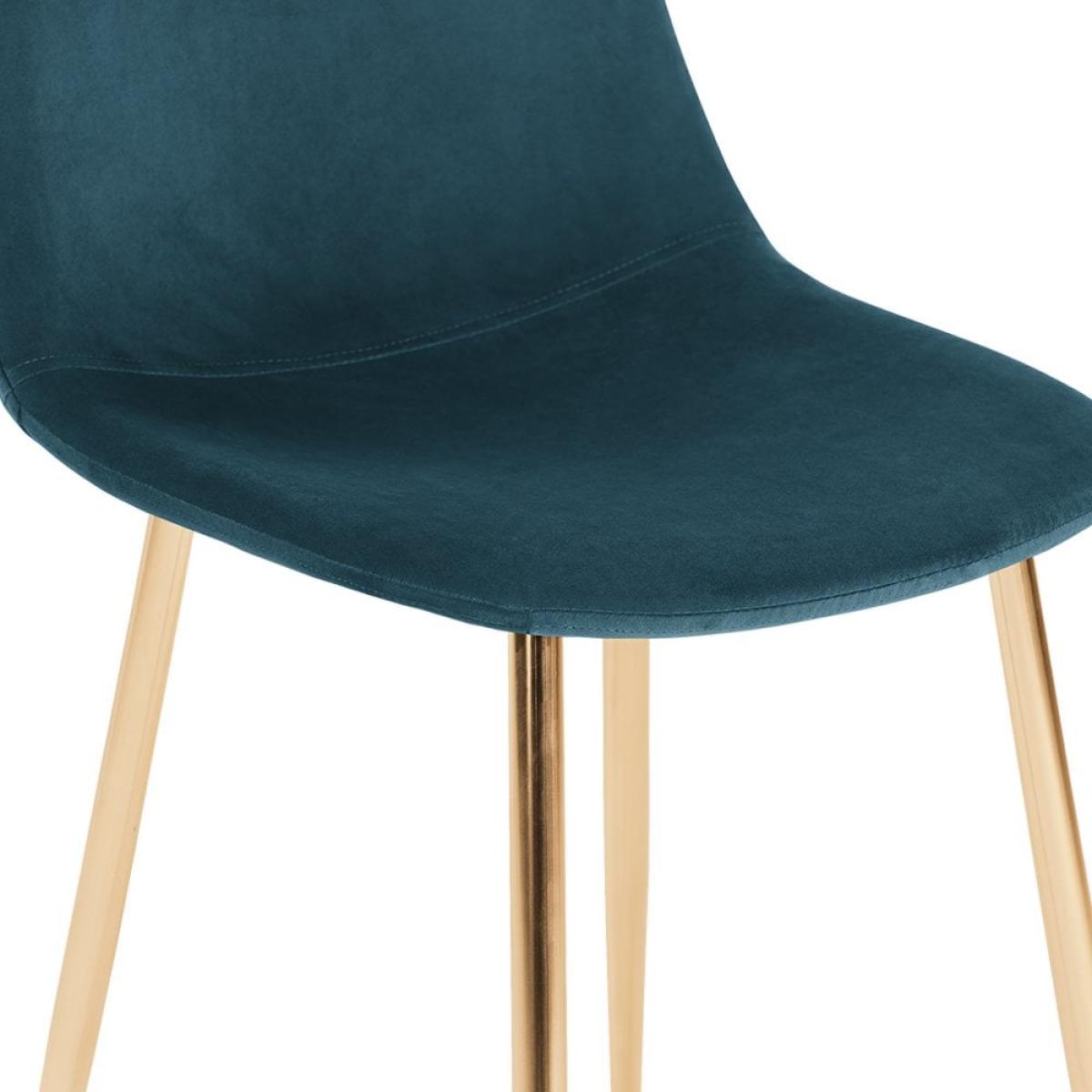 I really like this chair's rich midnight blue velvet upholstery, which adds a touch of luxury without feeling overly formal. The brass legs give it a modern edge, making it versatile for both contemporary and eclectic interiors. It works particularly well in mid-century inspired dining rooms or as a statement piece in a more minimalist space. For styling tips, consider pairing it with a glass or marble dining table to highlight the brass legs, or introduce complementing accessories like gold-toned tableware or cushions in complementary colours for visual interest. Its deep hue can anchor bold colour schemes or provide a sophisticated contrast in softer, neutral environments.