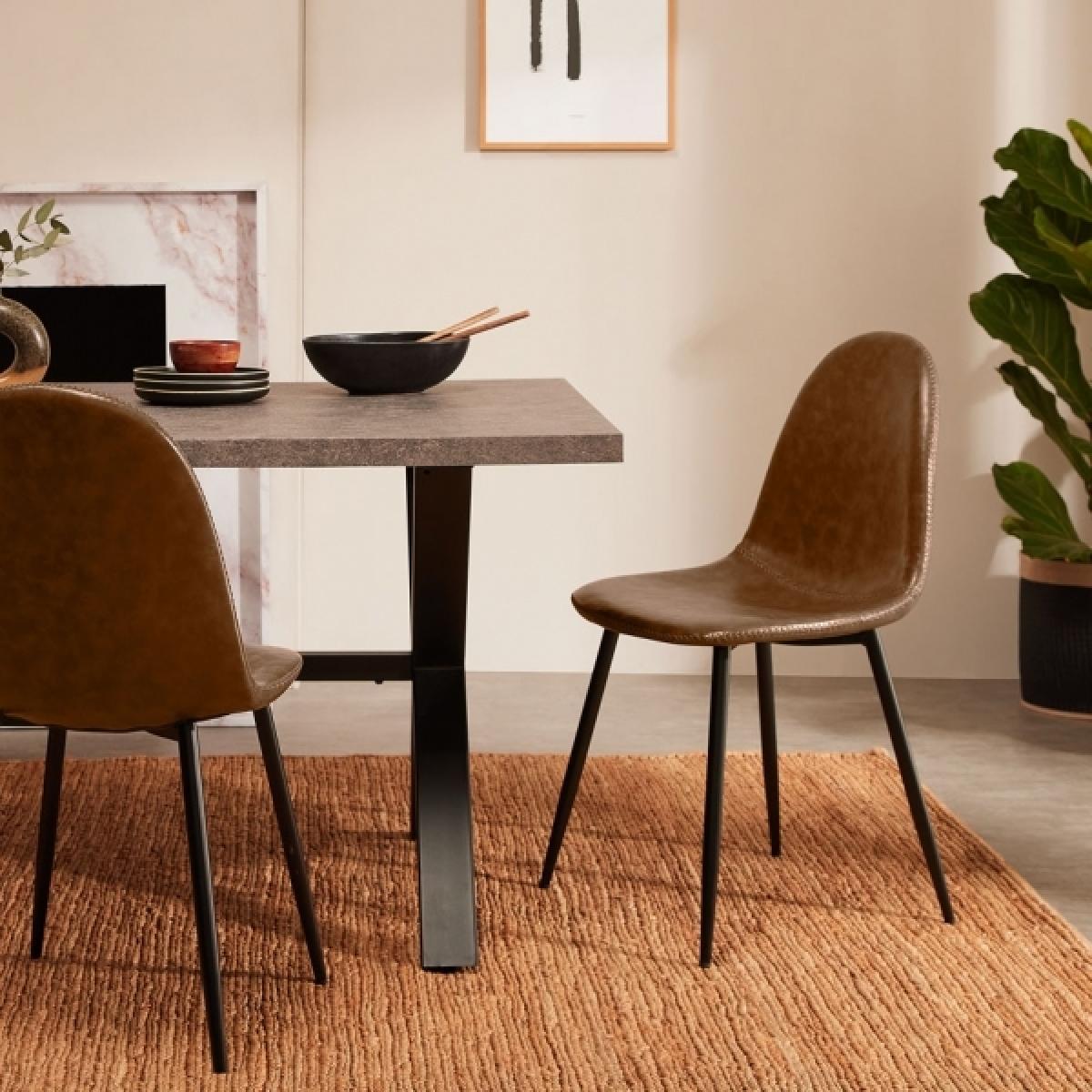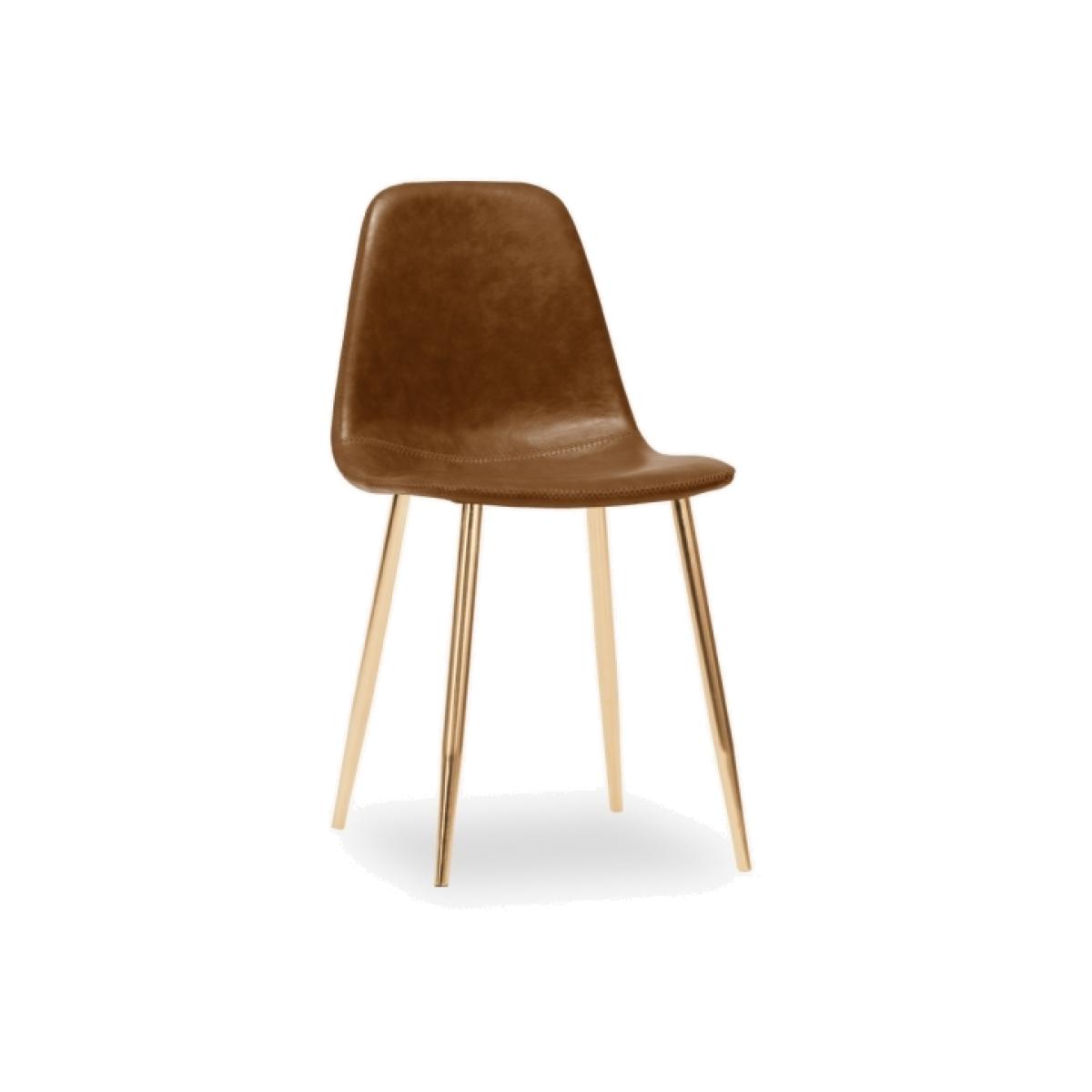 The Rayner dining chair is upholstered in tan faux leather for a smooth mid-century approach to modern dining chairs and the smooth, curved back hugs your body for a comfortable sit. Available in a range of colours, the Rayner upholstered chair is perfect for the dining room, kitchen or restaurant. Combine with a wooden dining table, elegant glassware and metallic pendant light to bring a mid-century approach to your interior. View The Rayner Range