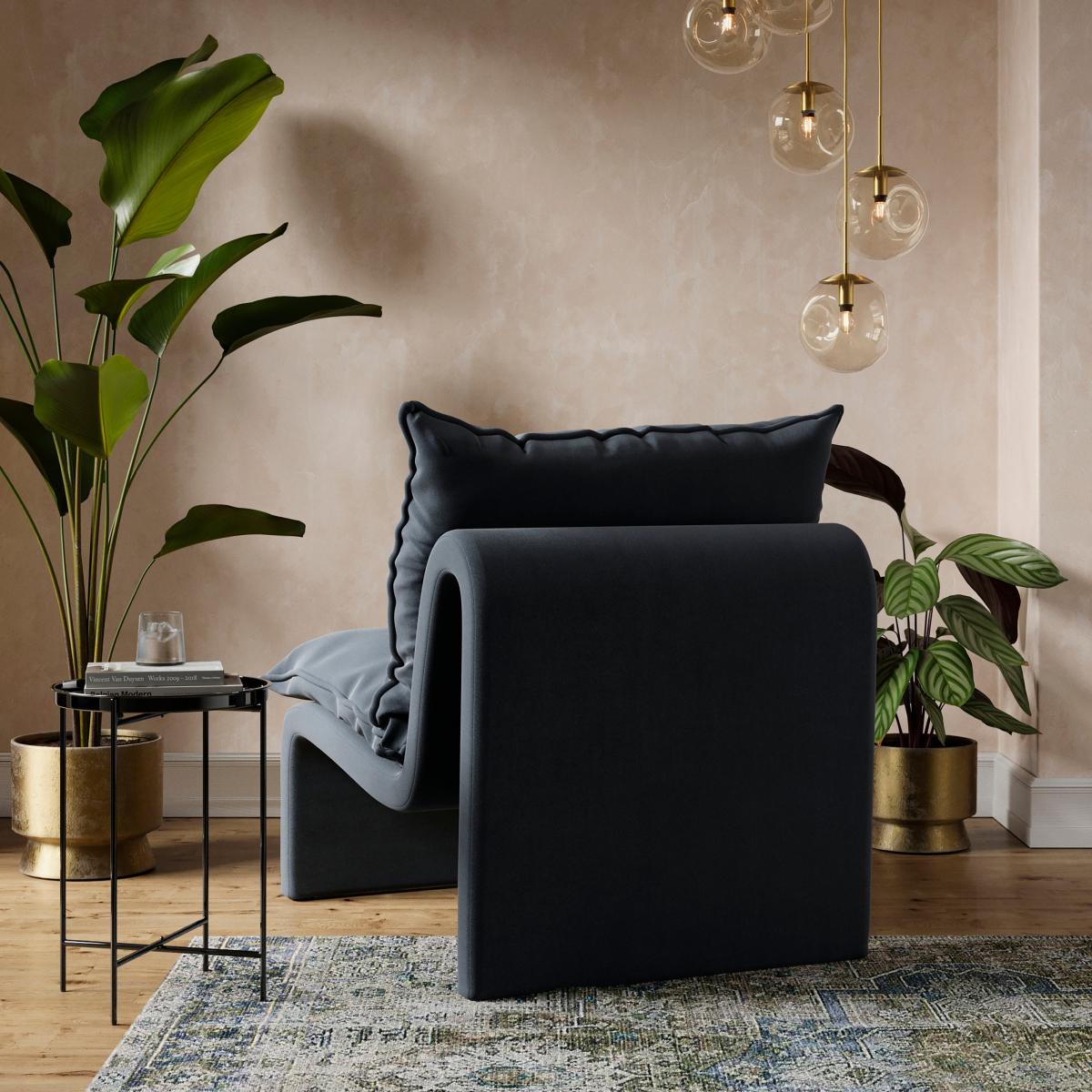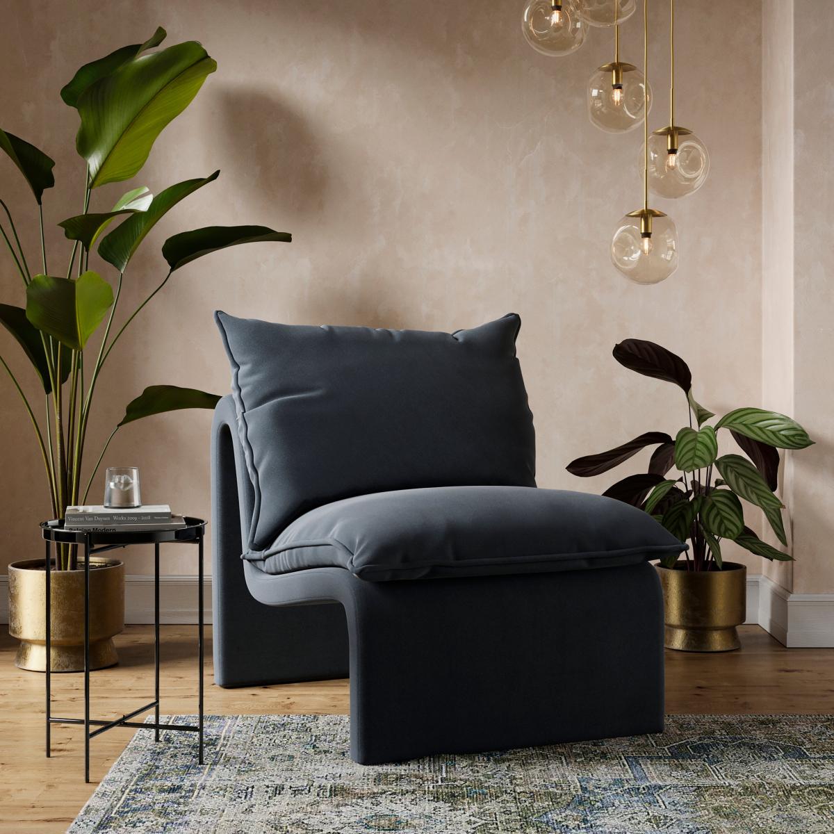 I really like the Rayner Velvet Accent Chair in ink because its rich blue hue adds a sophisticated touch to any space. It works particularly well in contemporary or eclectic interiors, acting as a statement piece that can elevate a neutral colour palette. For styling, consider pairing it with brass or matte black accents to enhance its luxe velvet texture, and place it in a cosy corner with a small side table for an inviting reading nook. Its versatile colour also means it can complement softer pastel tones or contrasting darker shades, making it a practical yet stylish addition to both living rooms and bedrooms.