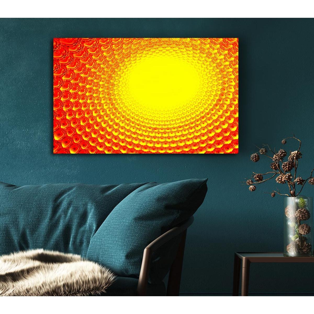 I really like this 'Rays Of The Golden Sun' canvas for its vibrant, uplifting colour palette-it’s a great way to bring some warmth and energy into a space. Its bold yellow tones work exceptionally well in neutral interiors, adding a splash of colour without overwhelming the room. I’d recommend placing it in living rooms or kitchens where it can serve as a focal point, paired with simple, modern furnishings to let the art stand out. For practical styling, consider layering it with softer textiles or metallic accents to create visual interest and balance. It’s a versatile piece that can effortlessly elevate contemporary, minimalist, or even eclectic interiors, making it a bright addition to any wall.