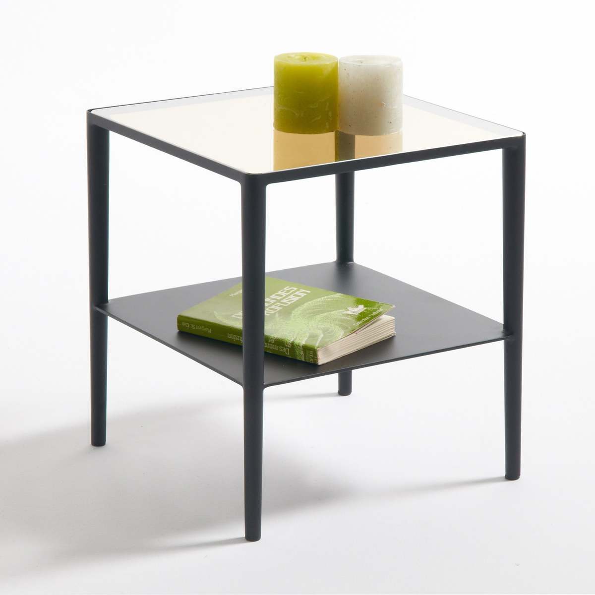 Razzi Two-Tier Side Table in Glass & Steel