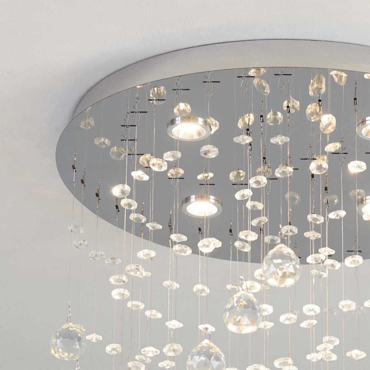 Bring some true elegance into your home with the Razzle Droplet LED Ceiling Fitting. Using real crystals, this light features jewelled strings dropping from a metal base, creating a swirling, sparkling aesthetic. Perfect for a living room or bedroom, this beautiful light will truly catch the eye and illuminate your room with grace.
