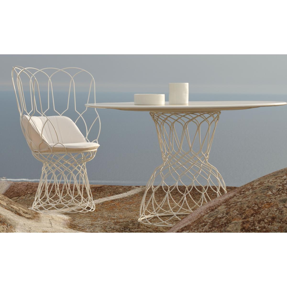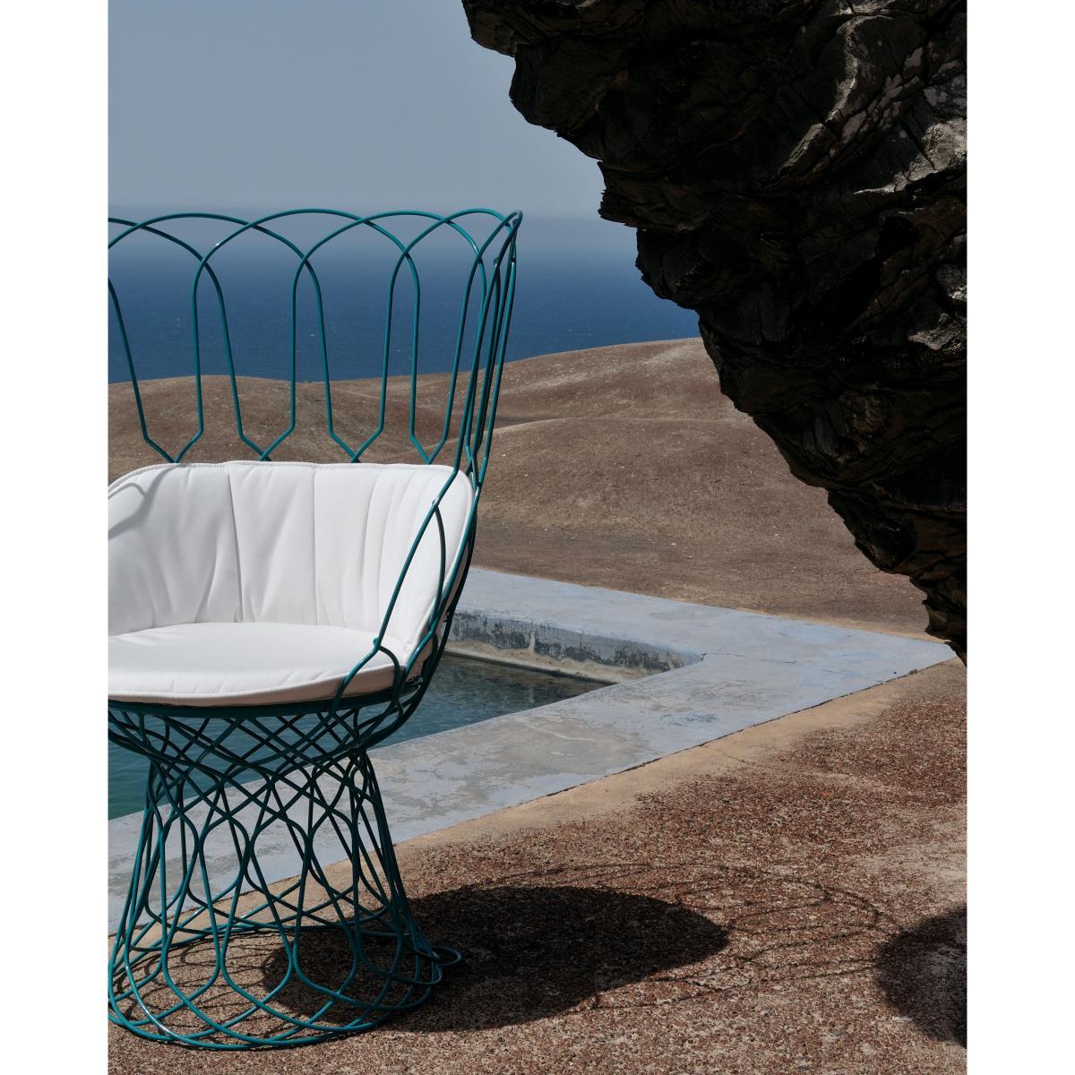 I love this piece because of its versatile, sculptural design that easily lends itself to both modern and classic garden settings. The re-touvé armchair’s sleek metal frame adds a contemporary edge, making it ideal for minimalist terraces or incorporating into eclectic outdoor spaces. It works well paired with colourful cushions or lightweight fabrics for added comfort and personality. Practical styling tips include combining it with natural materials like wood or stone to emphasise its clean lines, or using it as a statement piece alongside lush greenery or architectural planting. Its sturdy construction also makes it a reliable choice for frequent outdoor use, ensuring your style remains functional and stylish season after season.
