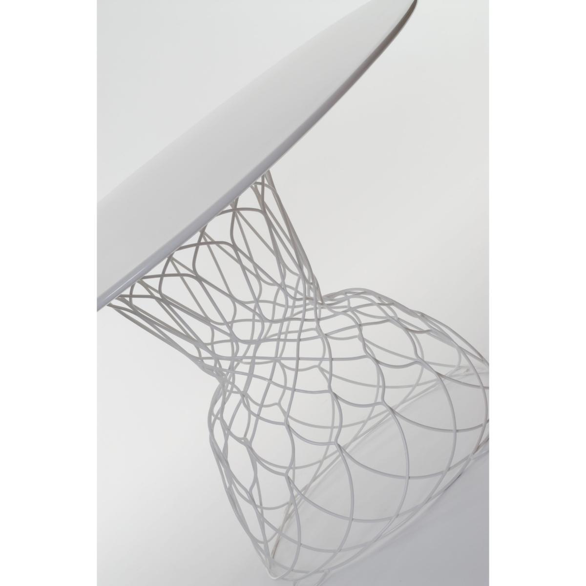 I love how the Re-trouvé is both elegant and versatile, making it a great choice for a variety of interiors. Its clean, white finish and sculptural wire base create a contemporary look that pairs well with minimalist, Scandi, or even eclectic spaces. For styling, I recommend contrasting it with chairs in different textures or colours to add visual interest, or keeping it simple with neutral tones to highlight its sleek design. It works particularly well in open-plan dining areas or kitchens where you want a slightly airy, light feel. Practical tips include pairing it with a thinner or larger tablecloth for special occasions or placing a simple centrepiece like a vase of fresh flowers or decorative bowls to keep the aesthetic fresh and functional.