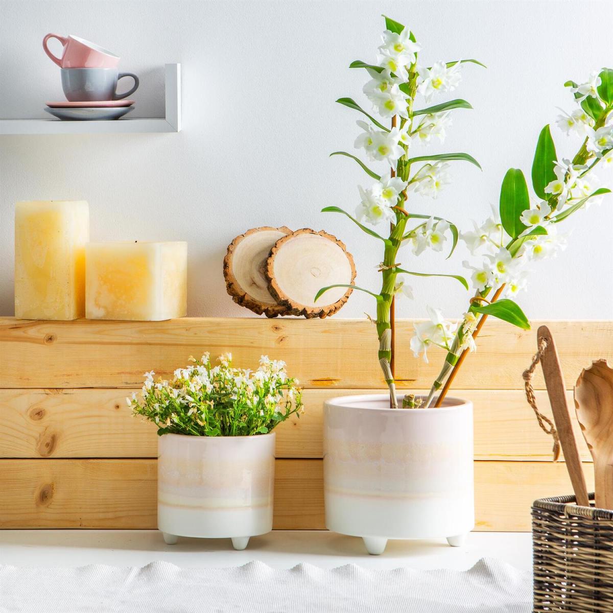 Give your potted plant pursuits the showcase they deserve with our range of Nicola Spring Reactive Glazed Plant Holders. Create one beautifully botanical oasis in your home, with a range of styles, sizes, and colours to choose from! Crafted from stoneware clay, these holders are designed to withstand the rigours of a busy household. Each holder has been carefully hand-glazed, producing a beautiful ombre pattern. This is formed through the process of a chemical reaction during firing, offering up a stunning organic design, with a gorgeous glossy finish, meaning each pot's design may vary and will be truly unique to you! The three raised feet offer up a subtle touch of height, allowing your houseplants to sit proudly! From home-grown herbs to hibiscus, these plant pots will make the ideal home for your earthy endeavours.