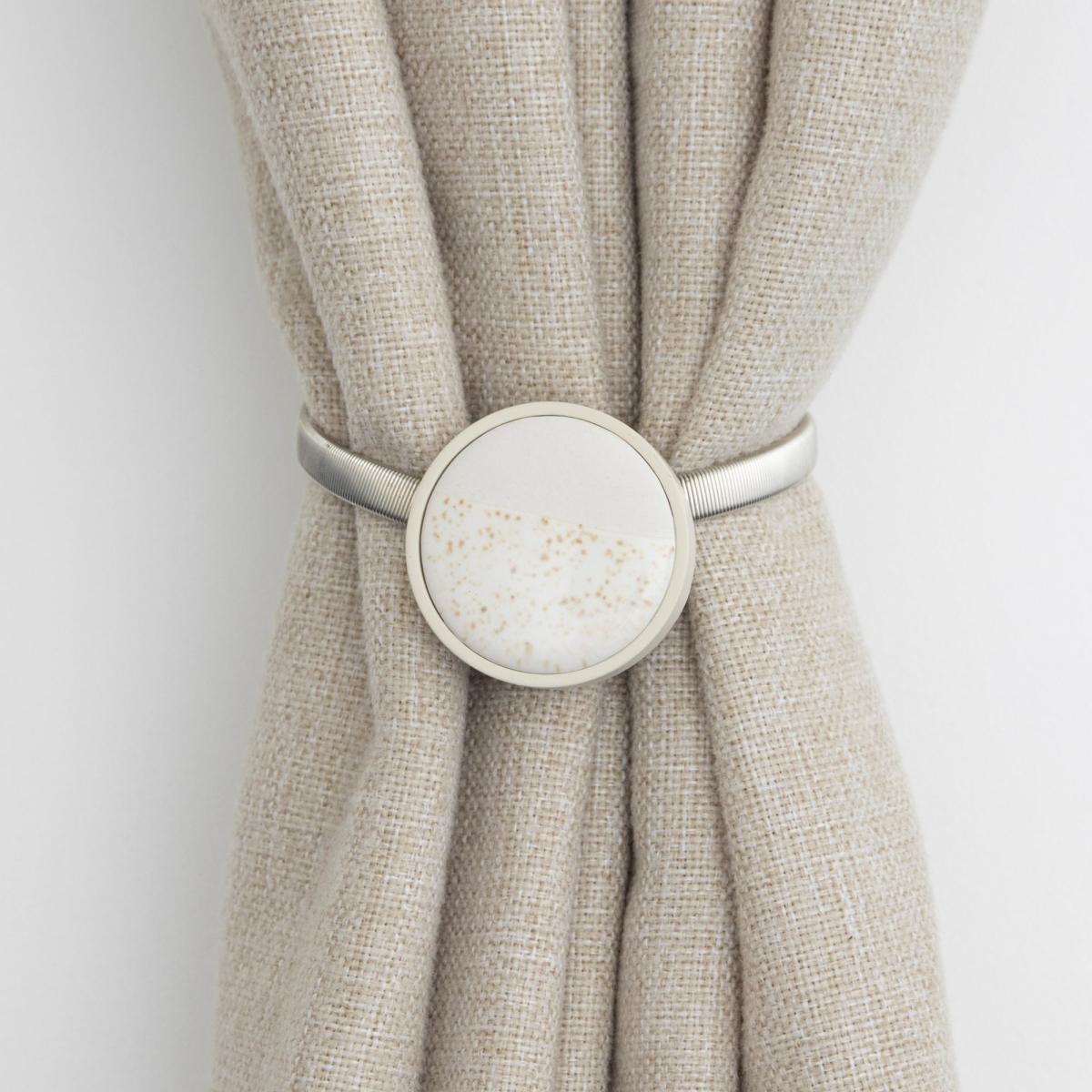 * Reactive glaze finish* Made with ceramic* Magnetic hold* Matching reactive glaze items available to purchase separately Crafted with precision from ceramic, the tieback boasts a mesmerising reactive glaze finish, adding a touch of sophistication to your window treatments. The magnetic hold ensures a secure and easy way to keep your curtains in place, creating a seamless and polished look. Coordinate with the matching Reactive Glaze items available to purchase separately.