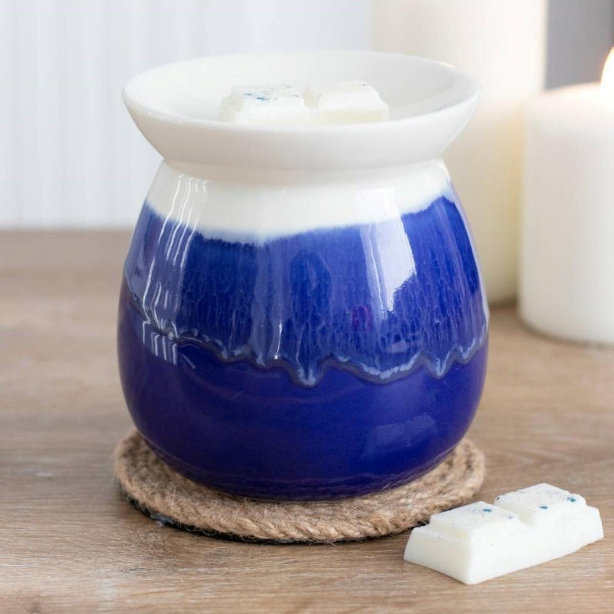 This stunning ceramic oil burner and wax warmer comes finished in a vibrant blue reactive glaze. Place diluted fragrance oil or wax melts into the built-in dish with a standard tealight inside to fill the home with calming fragrance.