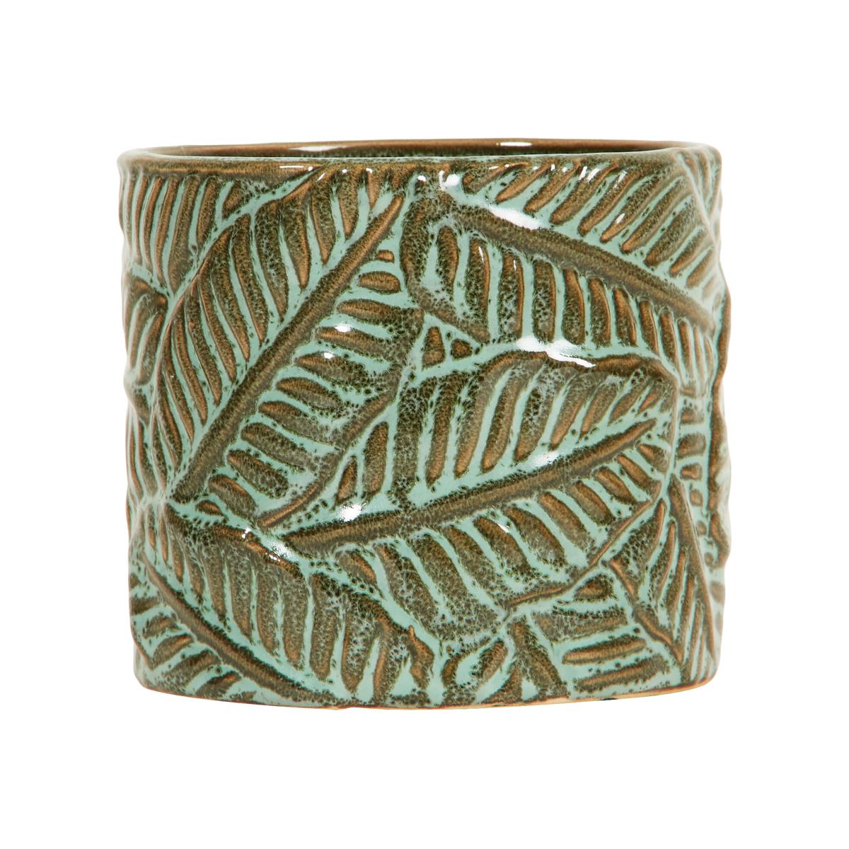 Keep bugs away and enjoy summer evenings with this Reactive Glaze Palm Print Citronella Candle. This stunning reactive glaze candle is perfect for setting the right mood in your home. It easily complements an array of decor styles and looks great on tables, mantels or shelves.