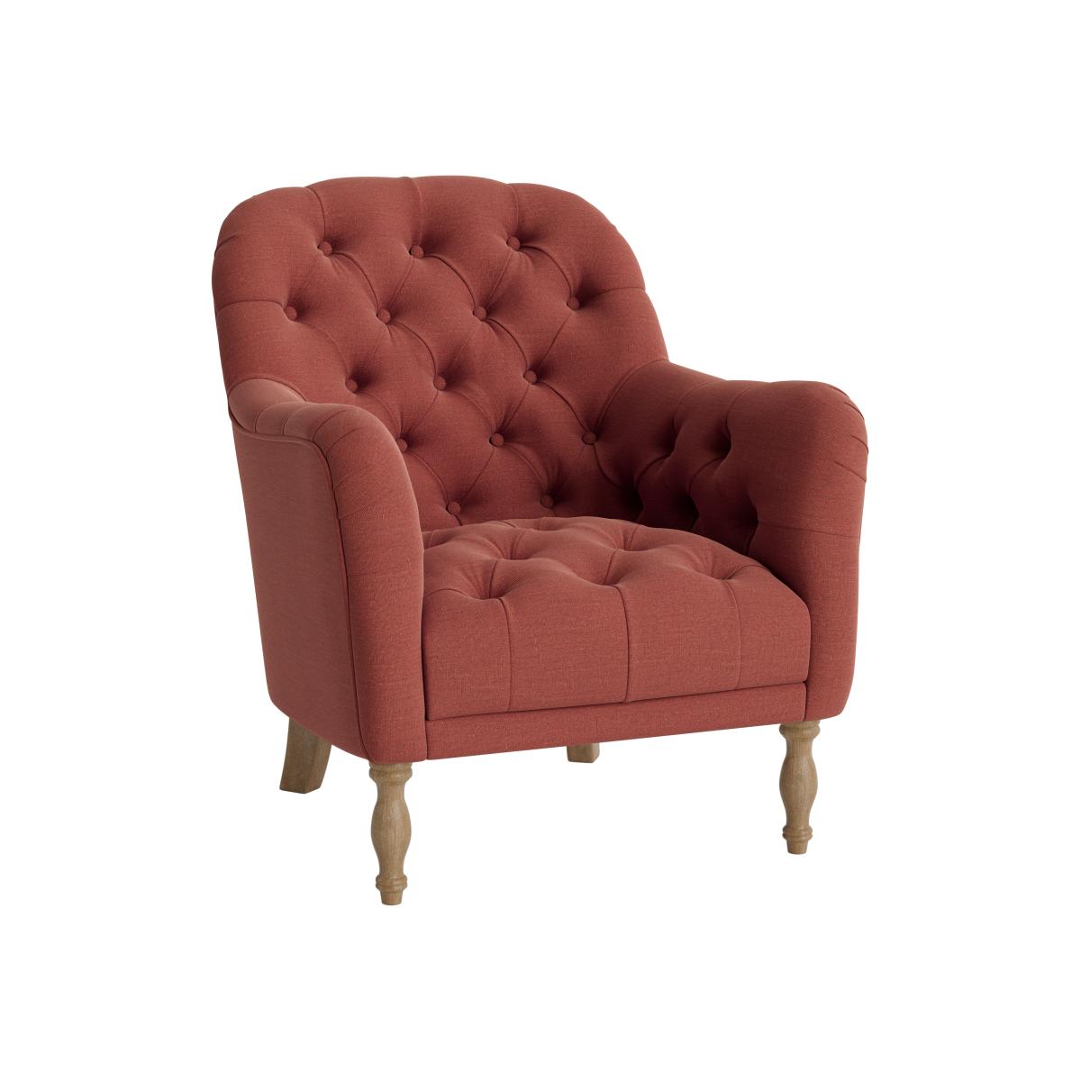 I love this chair for its classic tufted design and inviting shape, which makes it a versatile addition to a variety of interiors. It works particularly well in cosy reading nooks, traditional living rooms, or even eclectic spaces where you want a pop of colour and texture. To style it effectively, consider pairing it with a small side table and a reading lamp for a functional setup. It can also be dressed up with cushions in complementary or contrasting fabrics to add personalise and visual interest. Its warm colour makes it a focal point, but it also pairs beautifully with neutral palettes if you prefer a more understated look.
