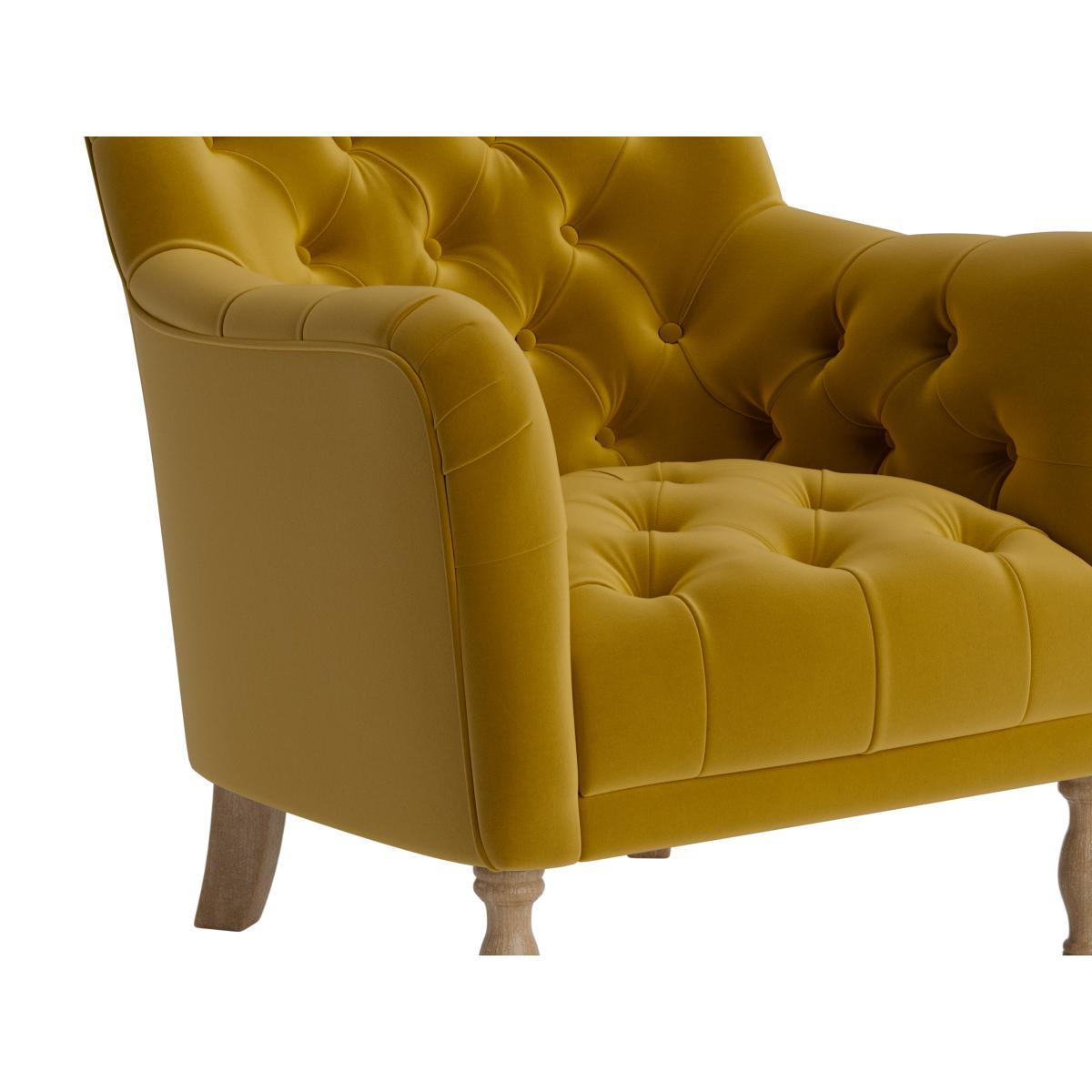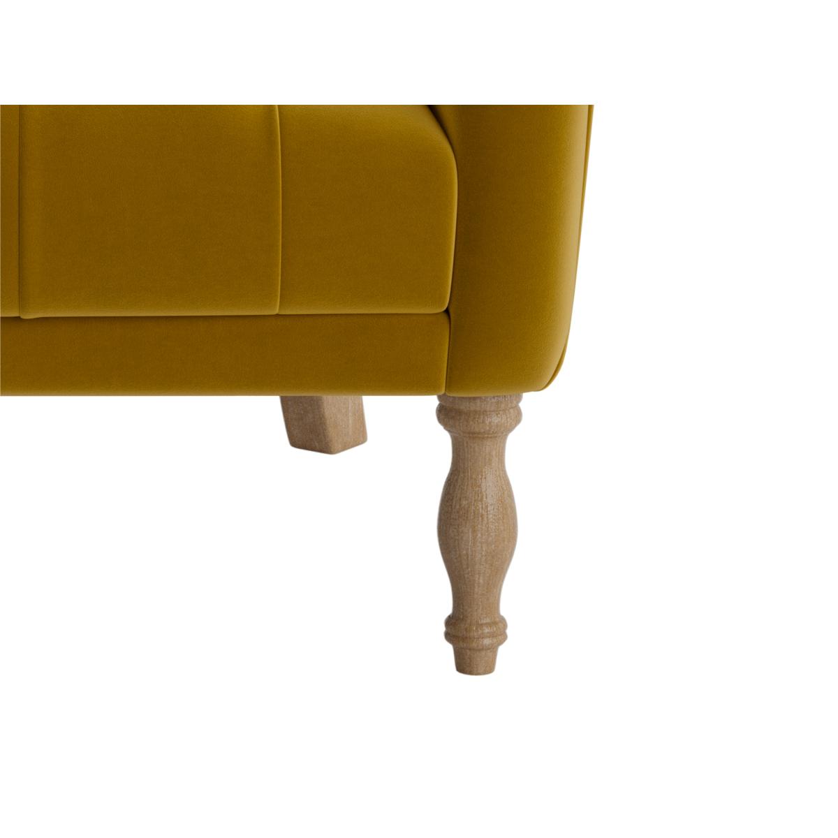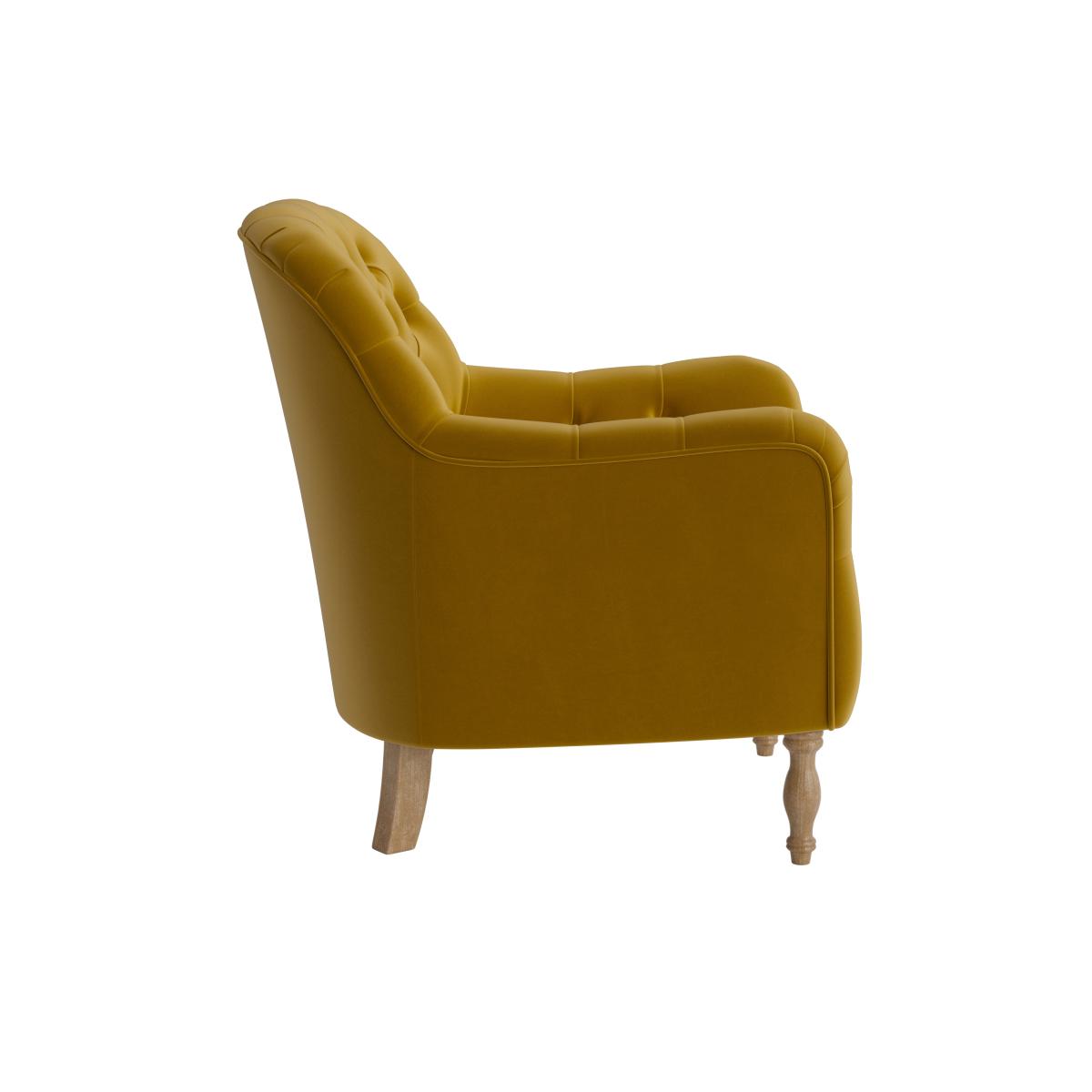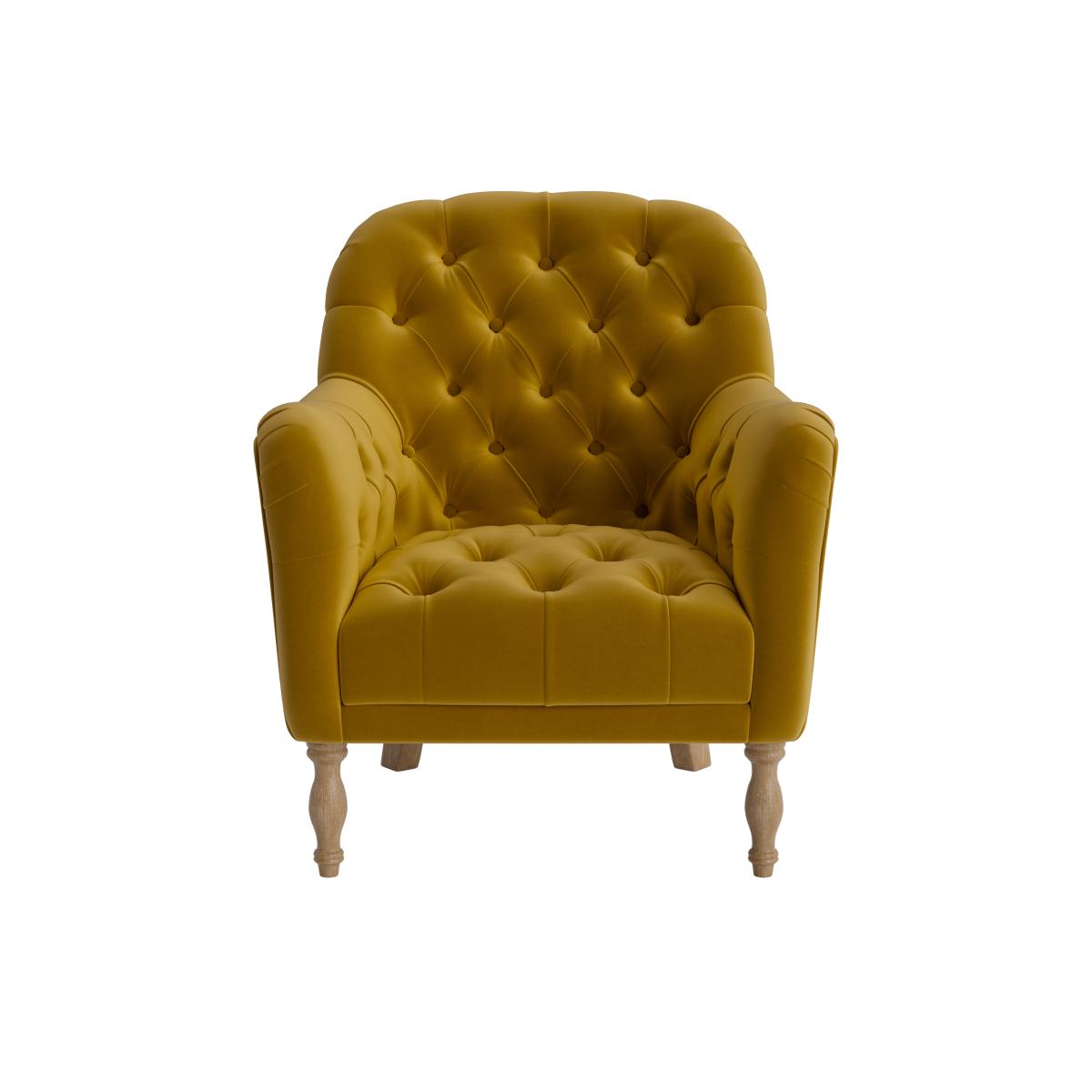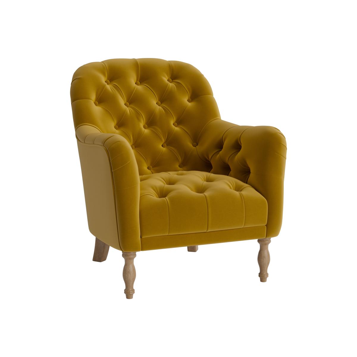 I really like this armchair for its classic yet contemporary appeal. The deep mustard colour adds a vibrant, cosy touch that works well in both traditional and eclectic interiors. It’s versatile enough to serve as a statement piece in a living room or a reading nook, especially paired with contrasting cushions or a textured throw. For styling tips, consider placing it next to a neutral-toned sofa to add a pop of colour, or combine with natural timber or metal accents for a balanced look. Its compact size makes it a practical choice for smaller spaces or as an additional seat in larger rooms, while the tufted design brings a layer of sophistication and comfort.
