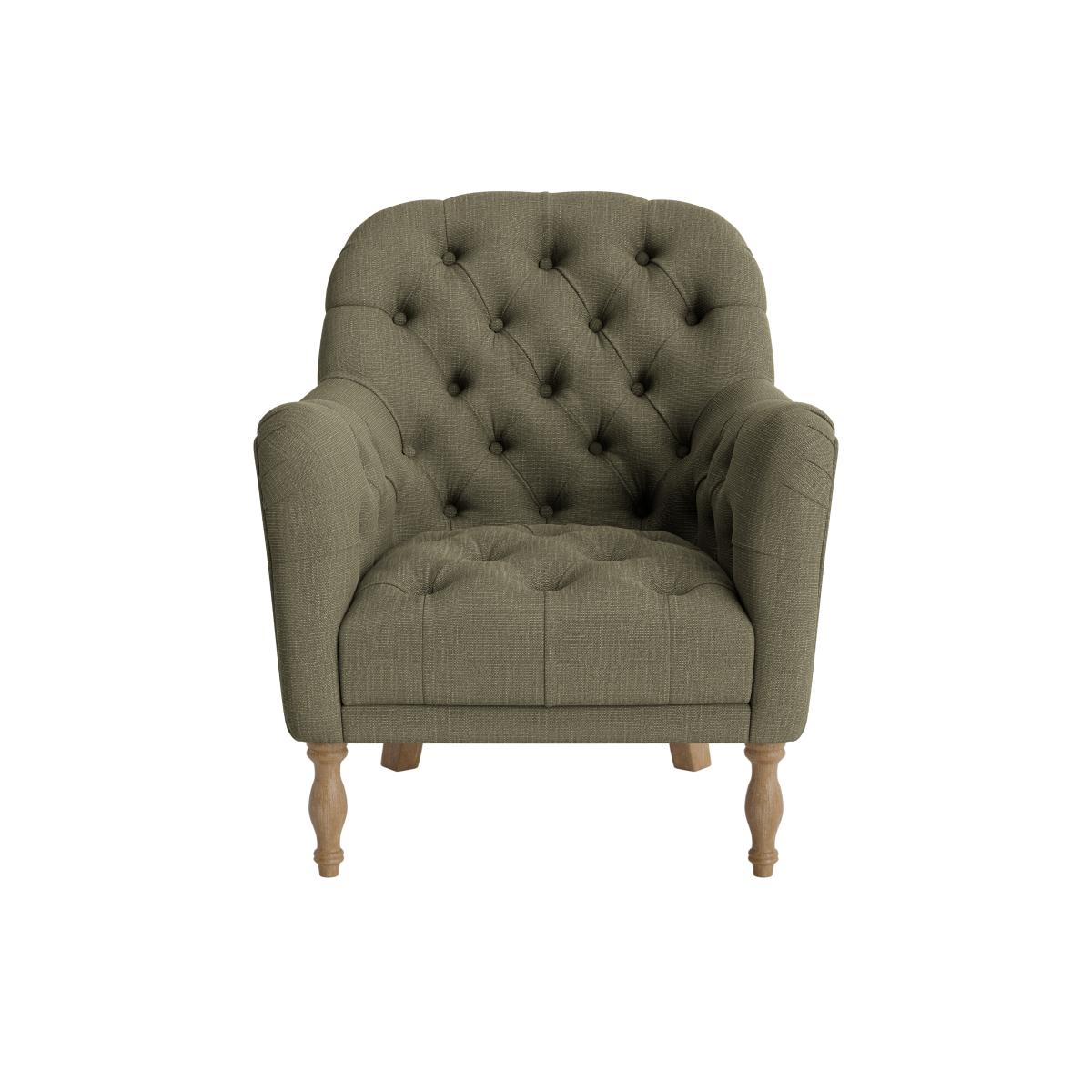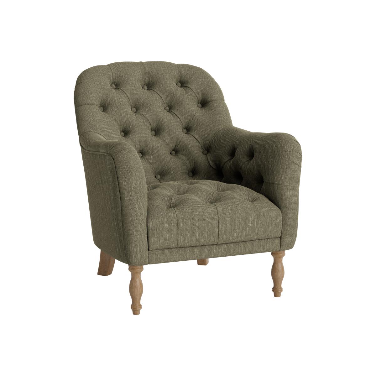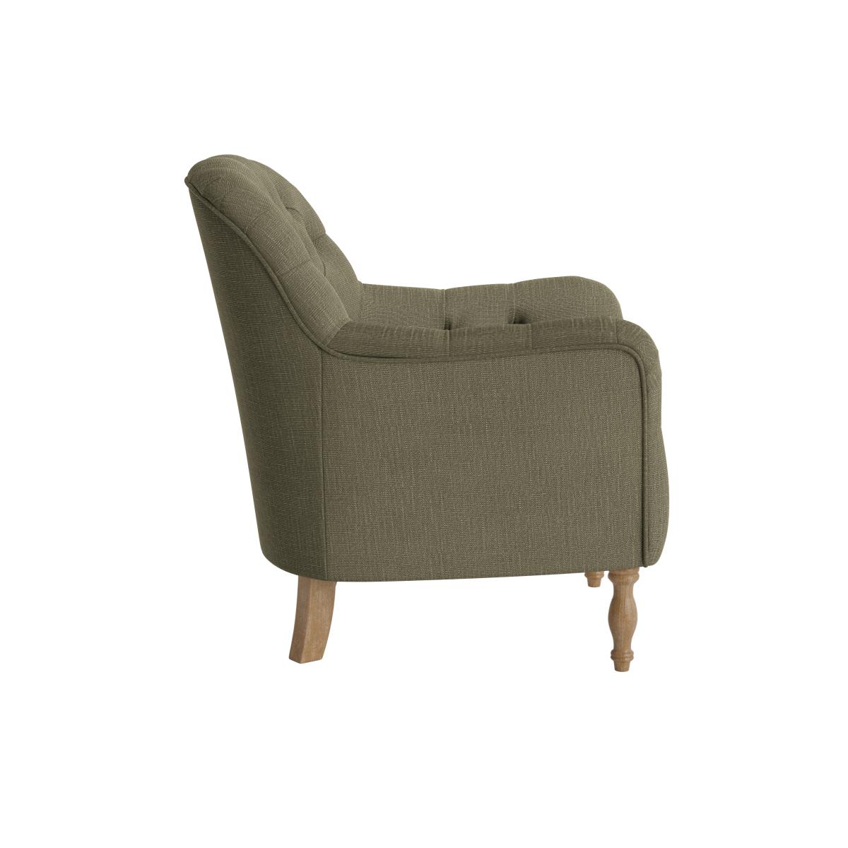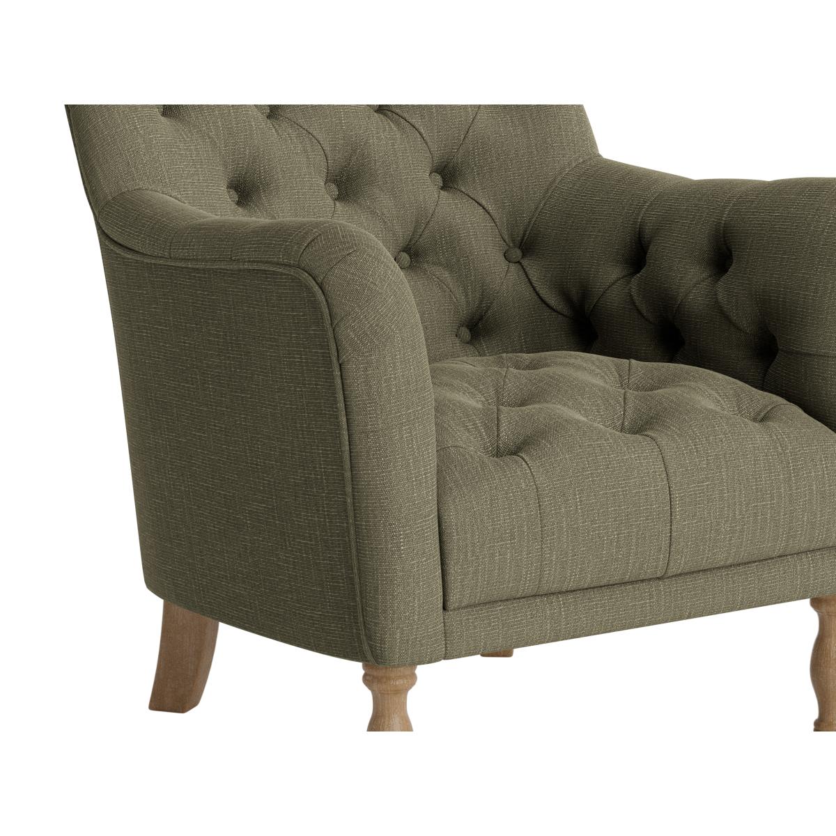 I love this armchair for its classic, versatile appeal. Its tufted back and comfy proportions make it ideal for cosy corners, reading nooks, or even as a statement piece in a more eclectic living space. The gently tapered wooden legs add a touch of traditional charm, but it can also be easily styled with modern accessories, like colourful throws or textured cushions, to create a layered look. It works particularly well in neutral or earthy colour schemes, offering a relaxed yet refined vibe. Practical styling tips include pairing it with a small side table and a good reading lamp for an inviting, functional spot, or positioning it alongside other vintage or mid-century pieces for an eclectic mix.