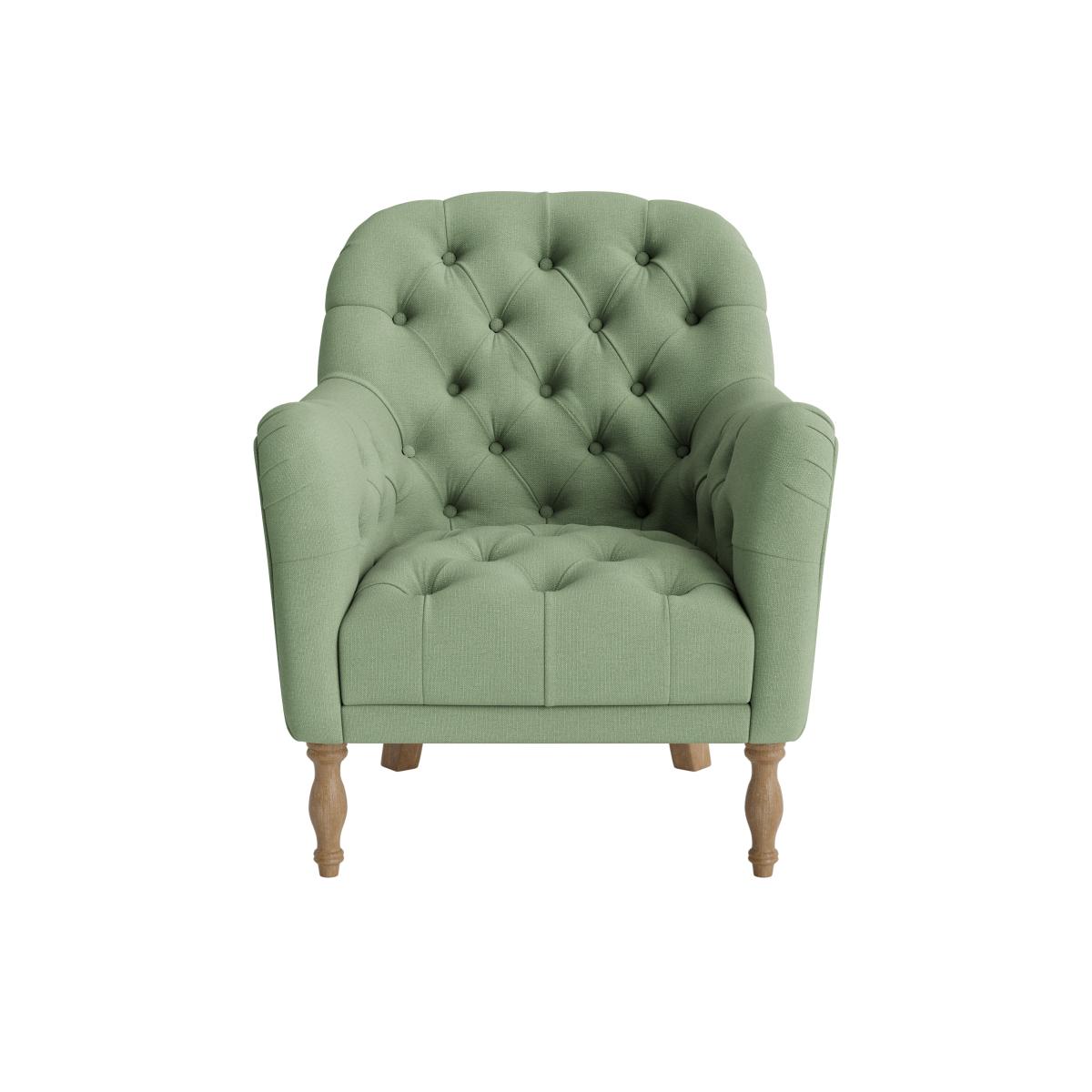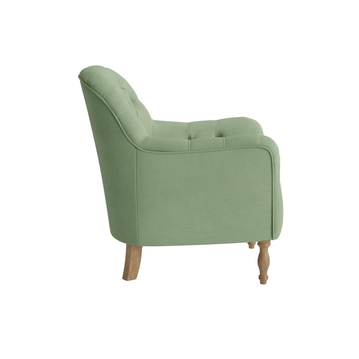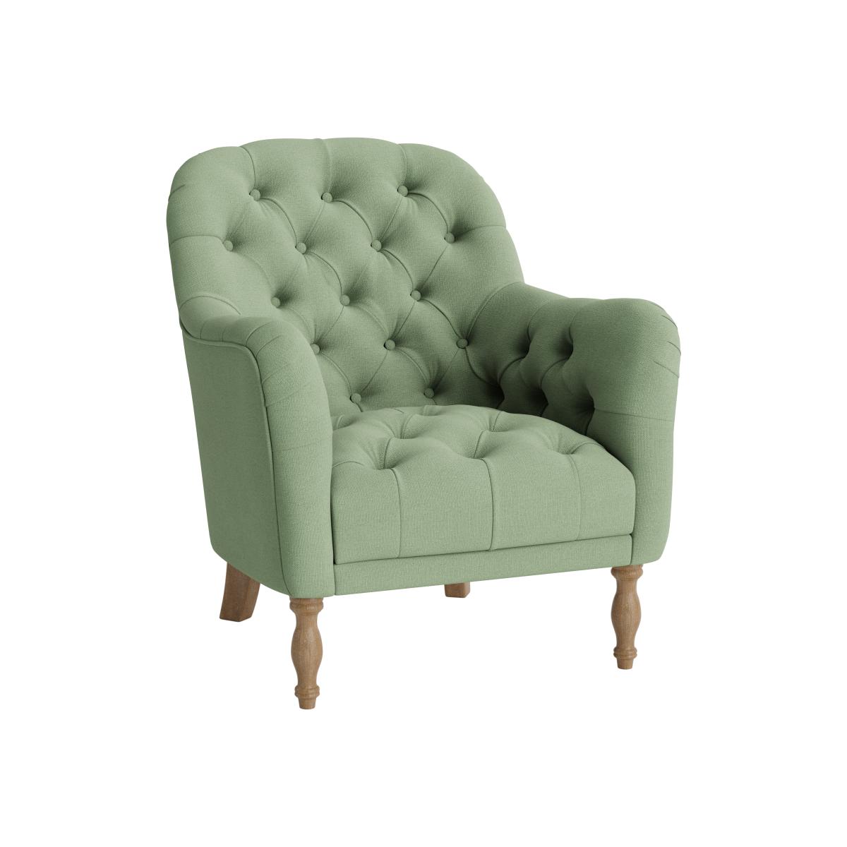 I love this armchair because of its classic yet versatile design, - perfect for adding a touch of elegance to both traditional and modern interiors. The soft green hue works well in neutral colour schemes, or as a subtle pop of colour in more vibrant spaces. It's ideal for cosy corners in living rooms or bedrooms, where it can serve as a practical reading seat or a statement piece. For styling, consider pairing it with textured cushions or a warm throw to enhance its inviting feel. Its timeless shape and muted tone make it adaptable for various aesthetics, fromScandinavian to vintage-inspired looks.
