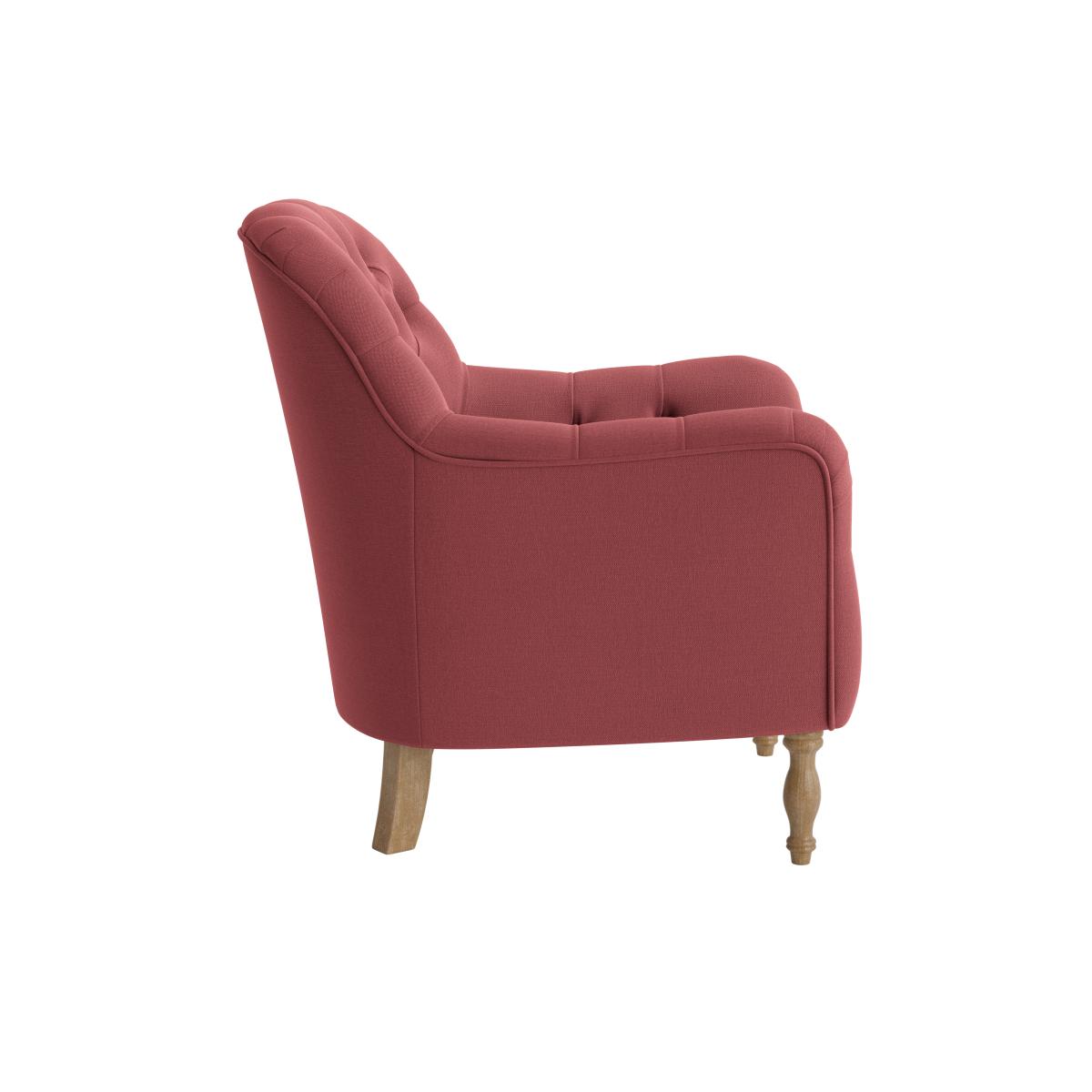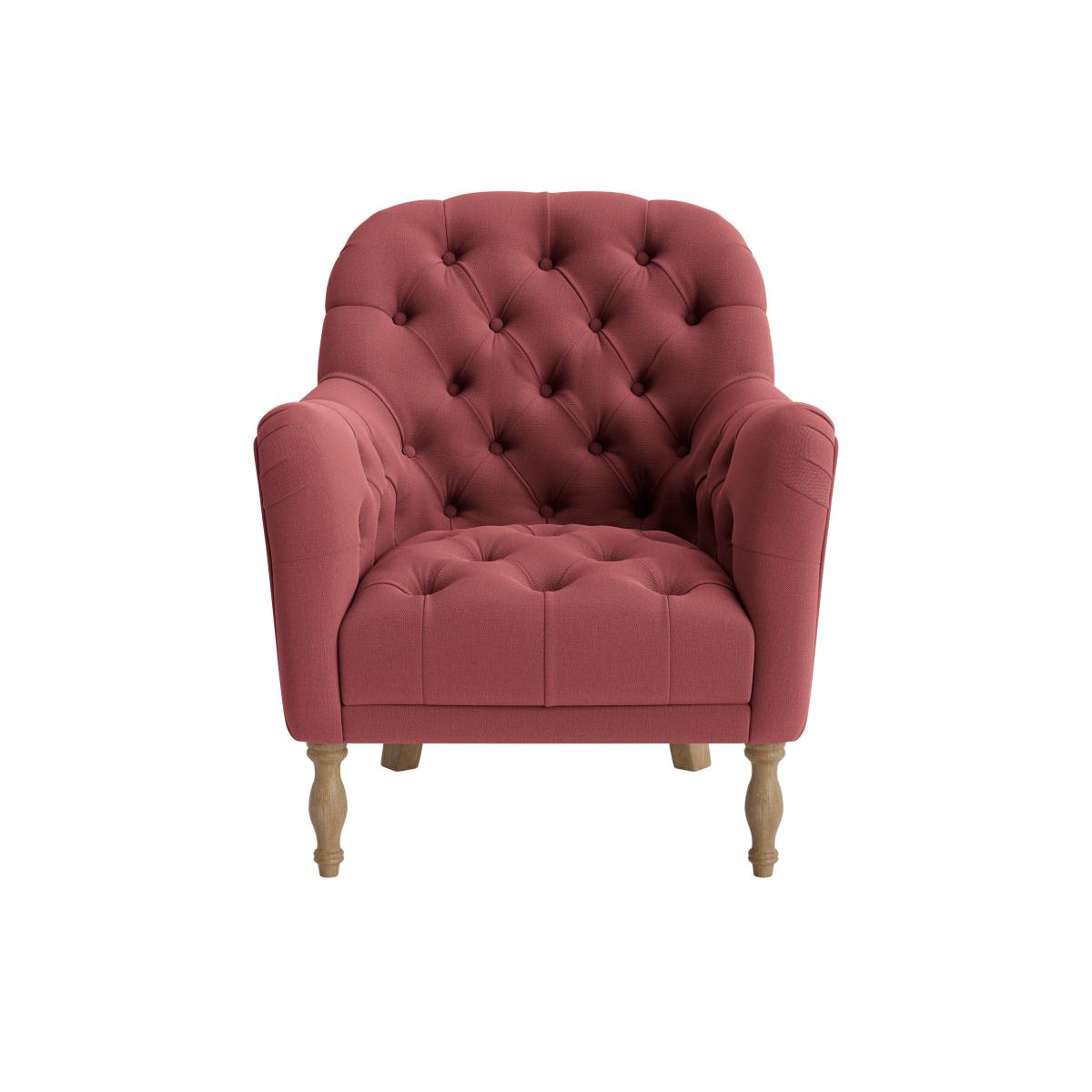 I love this chair for its classic yet versatile look, making it a great choice for a variety of interiors. Its plush, tufted design adds a touch of elegance, while the soft pink hue brings warmth and a subtle pop of colour. It works particularly well in cozy reading nooks, home offices, or even conjunction with a vintage-inspired scheme. Practical styling tips include pairing it with a neutral, textured throw or a few patterned cushions to add visual interest without overwhelming the space. The wood legs keep it grounded, giving it a timeless charm that can elevate both traditional and eclectic interiors.