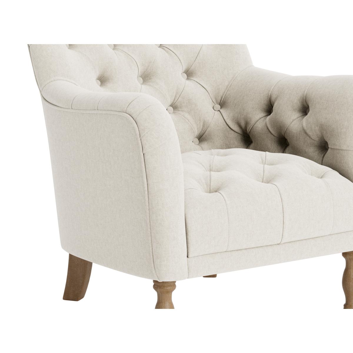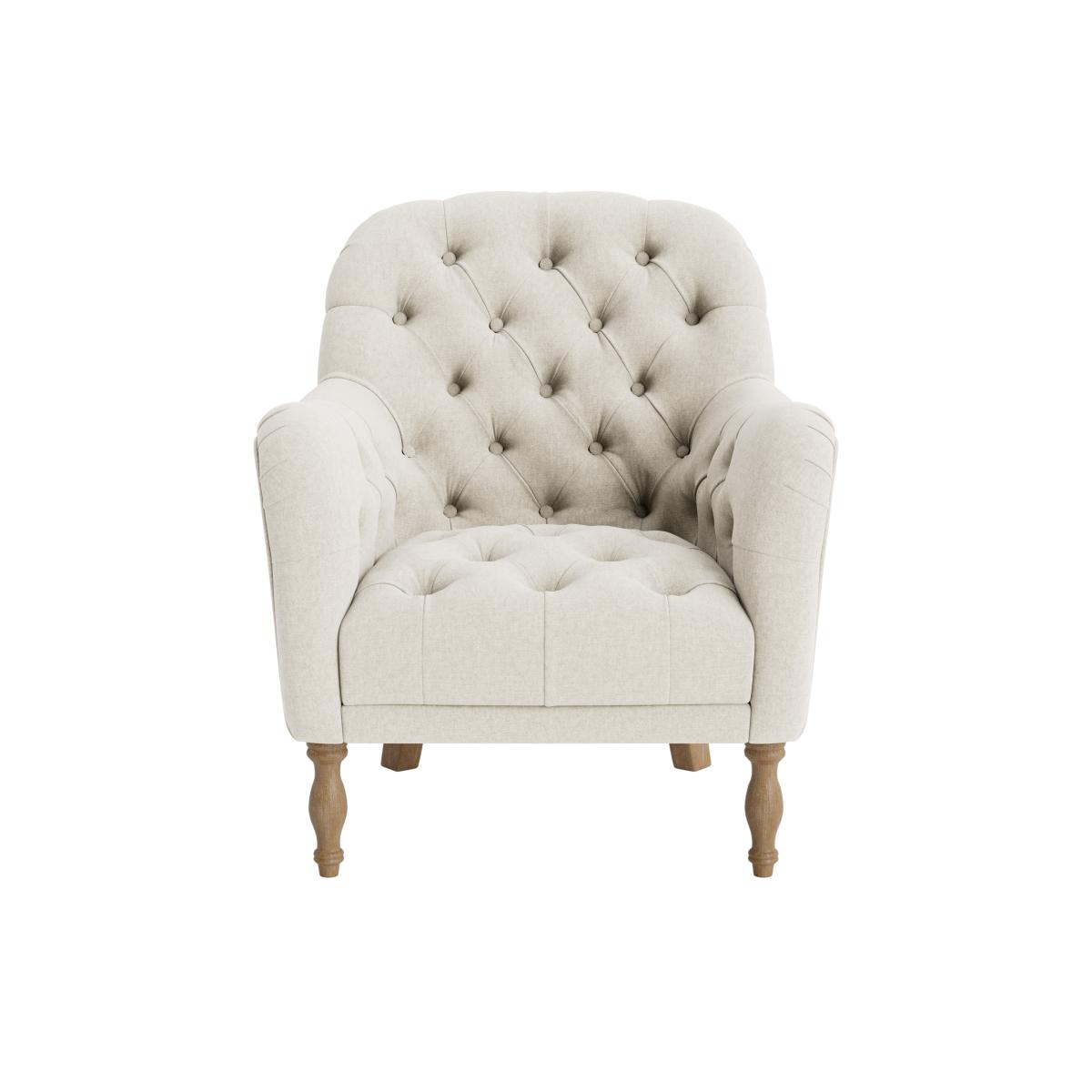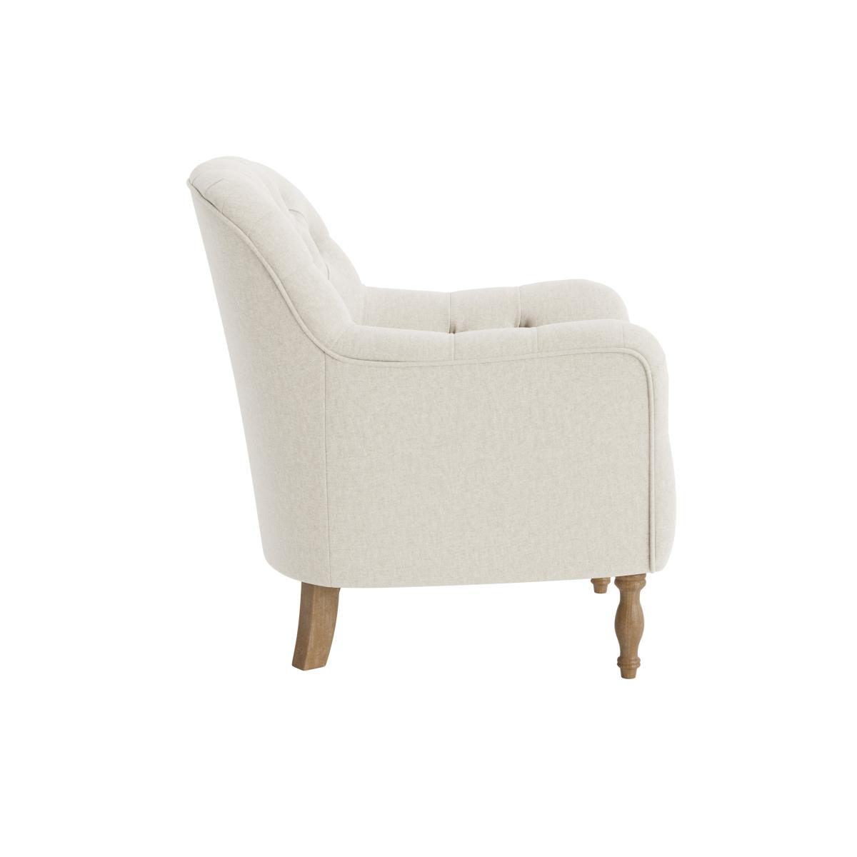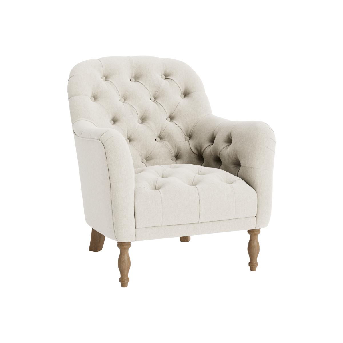 I really like this one - it’s a versatile piece that works well in a variety of interiors, especially those with a cosy or traditional vibe. The button-tufted back adds classic charm, while the neutral colour makes it easy to incorporate with different colour schemes. It’s perfect as a reading chair in a living room or cozy corner, and it pairs well with both wood and fabric furnishings. For styling tips, consider adding a small side table and a reading lamp nearby for functionality, or dress it up with a textured throw and cushions to add layers of comfort and colour. Its timeless look makes it a practical choice that can adapt as your interior style evolves.