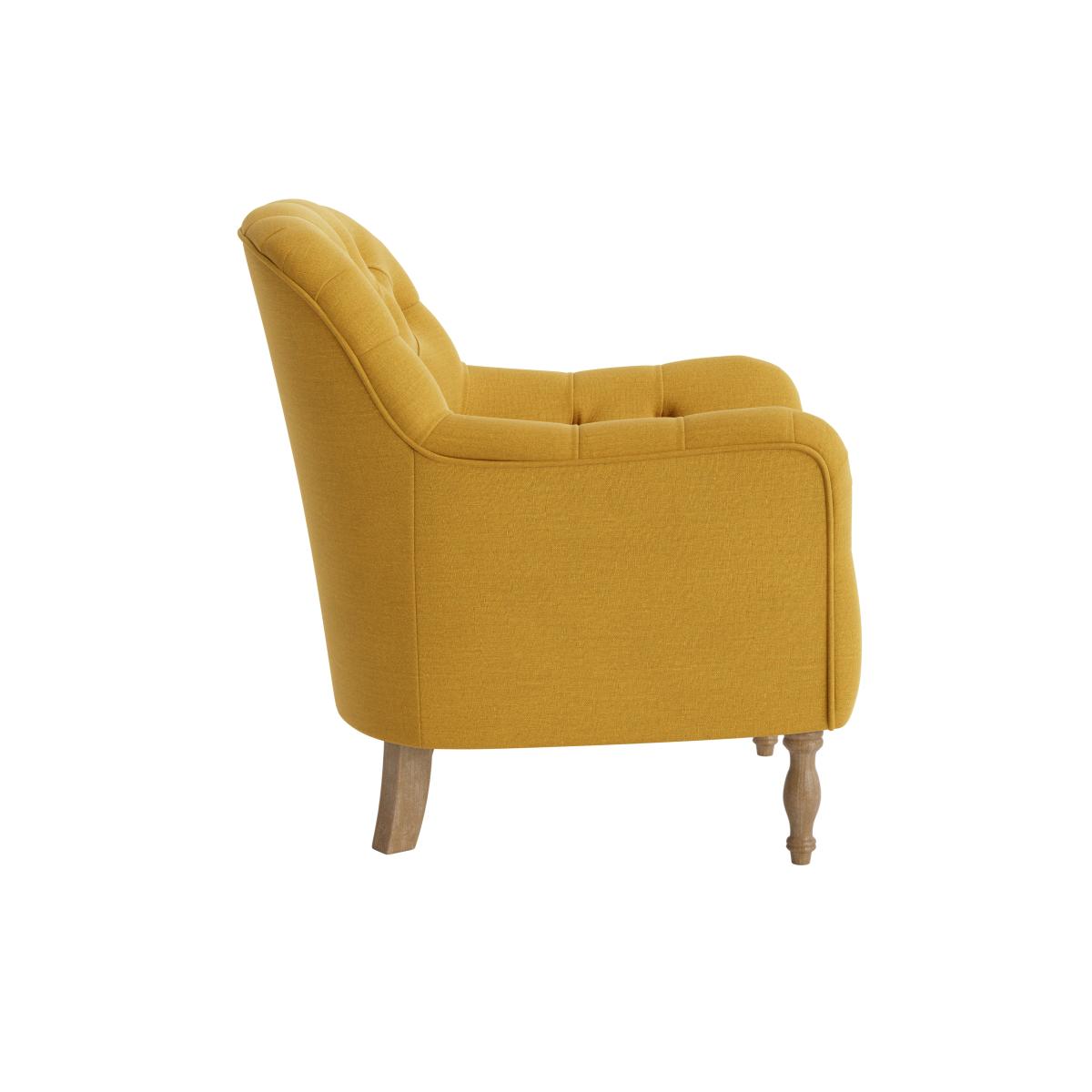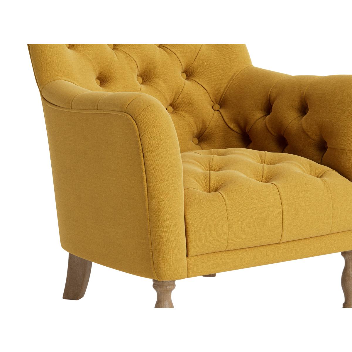 I love this armchair because of its classic tufted design combined with a vibrant mustard hue, which can serve as a striking focal point in a cosy reading nook or living area. Its traditional silhouette works well in both vintage-inspired interiors and more contemporary spaces when paired with sleek accessories. Practical styling tips include layering with textured cushions or throws for added comfort and visual interest. It’s versatile enough to sit alongside a neutral sofa to add colour, or to anchor a corner in a room where you want a pop of personality. This chair is perfect for creating an inviting spot to unwind while bringing a touch of character to your decor.