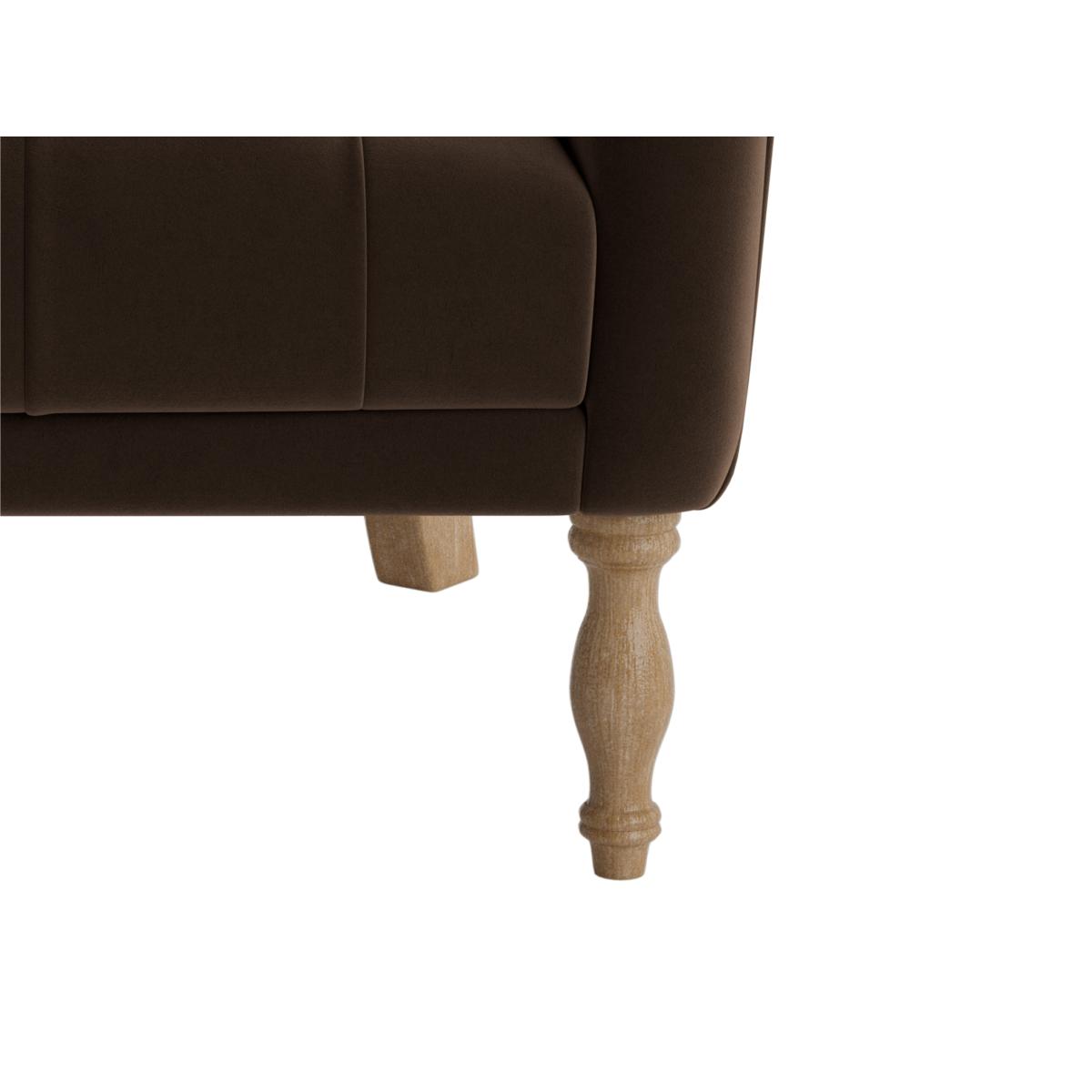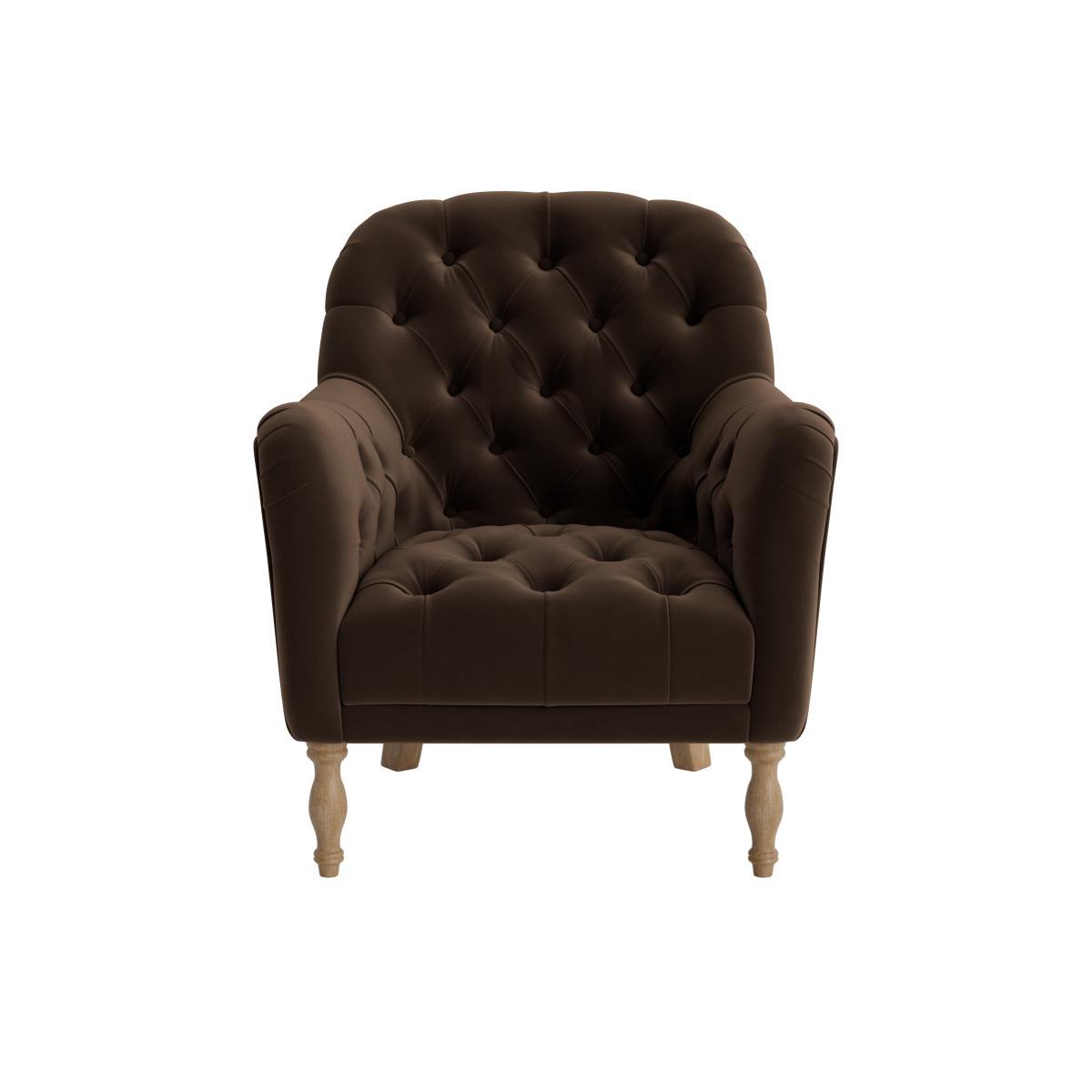 Sitting in this buttoned armchair is like receiving a whopping great big hug from a bear*. That's how comfy it is. (*A teddy bear. Not a real bear. That would be lethal.)