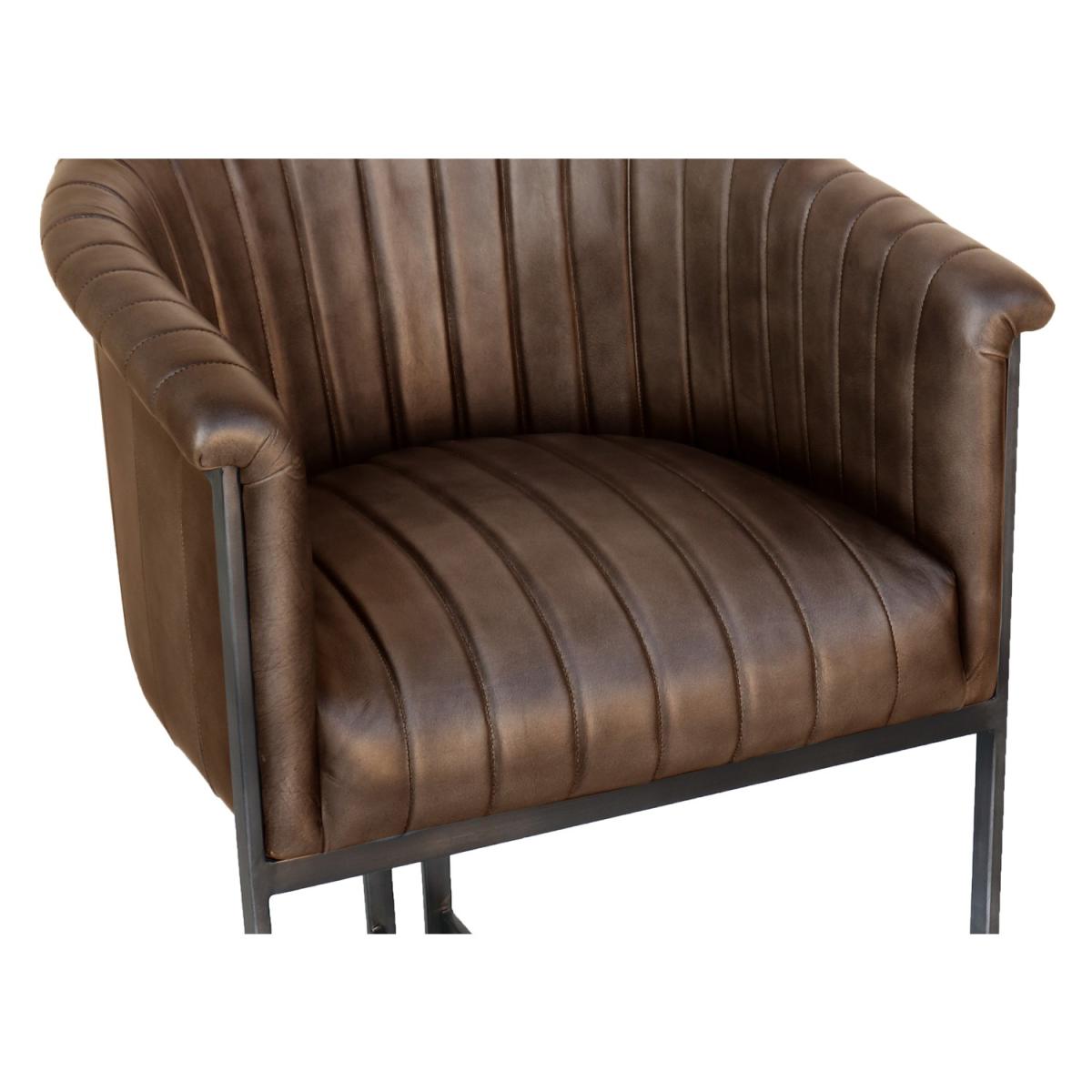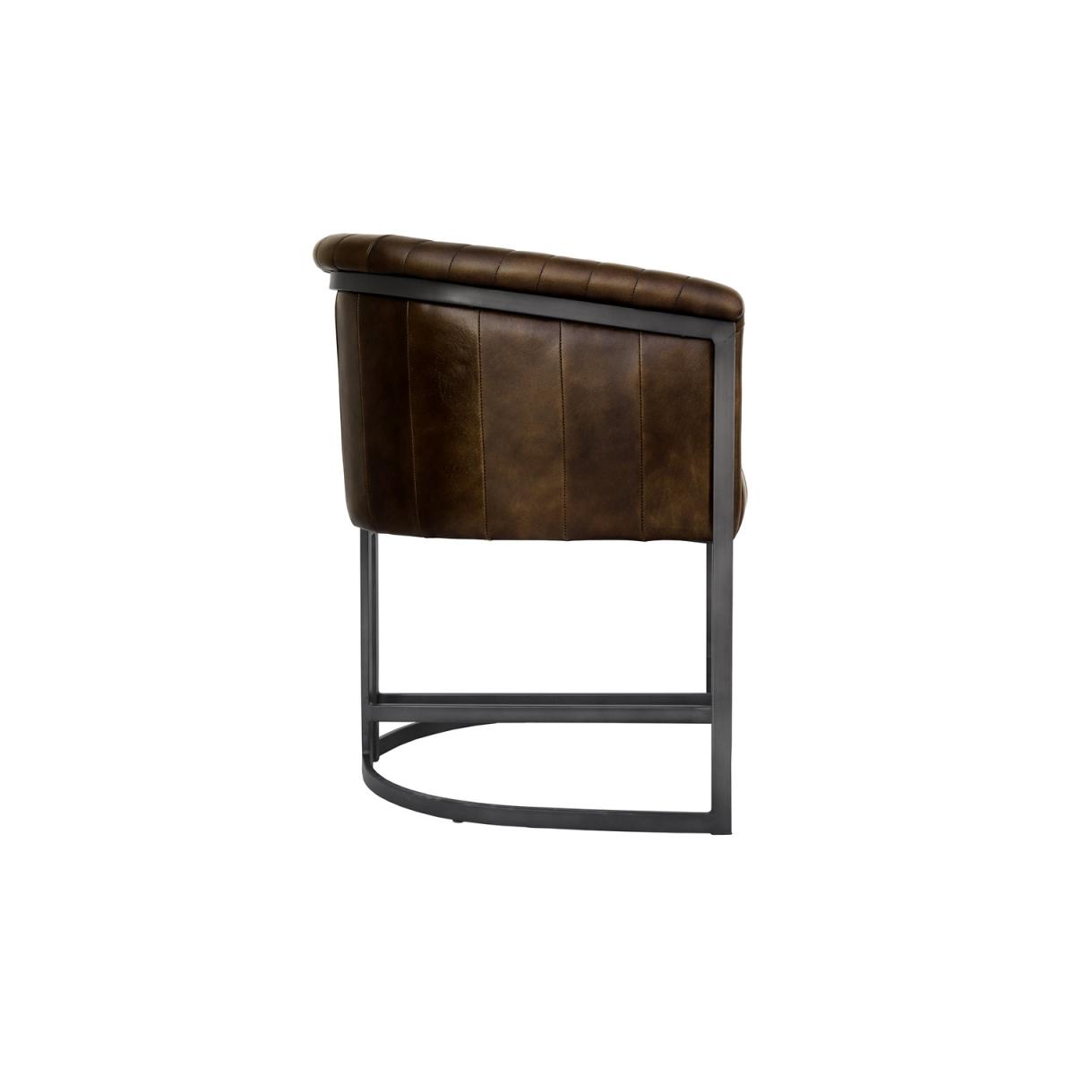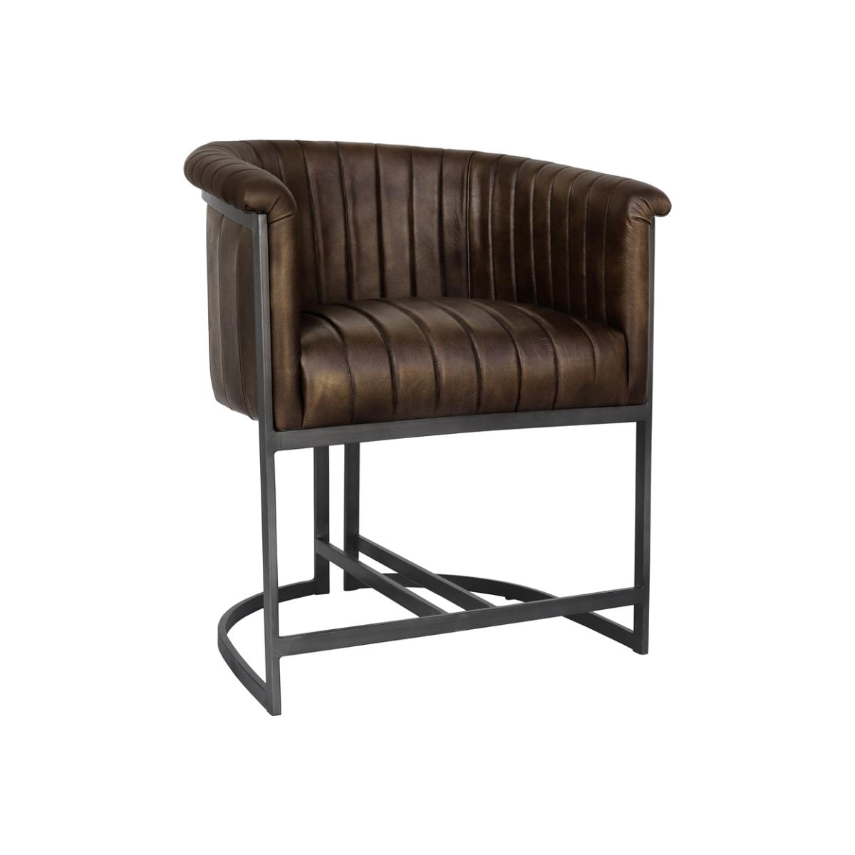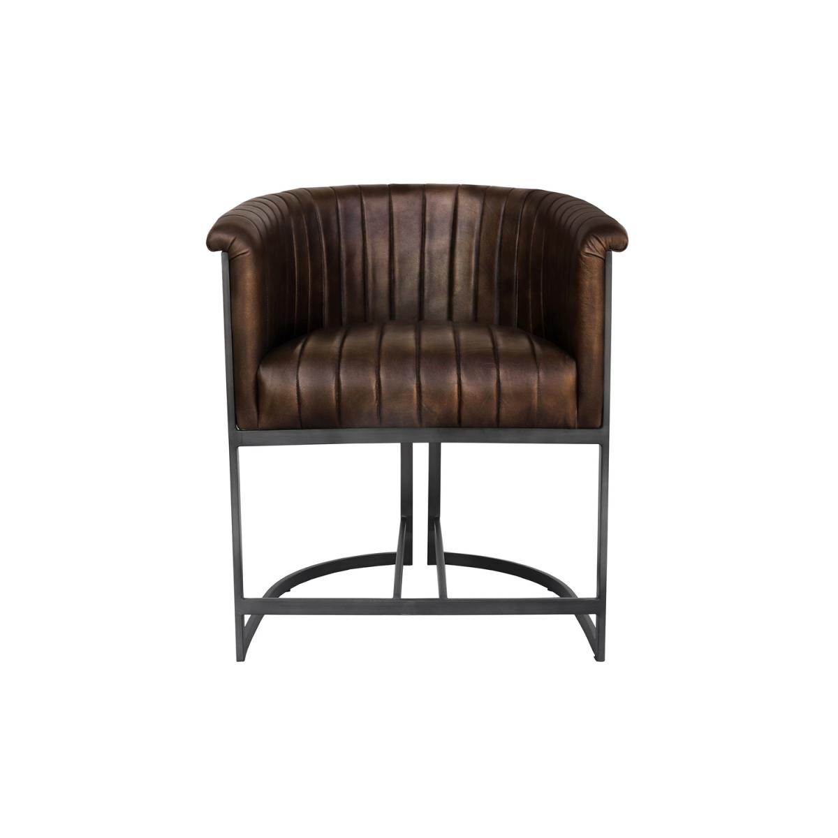 Real Leather & Iron Classic Tub Dining Chair - Brown