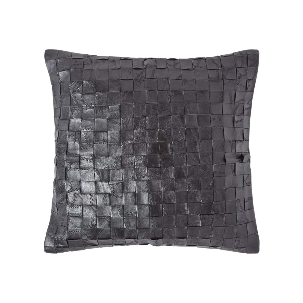Stylish cushion cover from Homescapes, crafted out of black leather offcuts featuring a check design to add texture to your home interiors. In black, this cushion cover can be easily introduced to any interior style. Leather offcuts have been woven in a way to create small loops that feature a checked design. Perfect for adding texture to your living room, study or conservatory, this cushion cover feels soft to the touch.