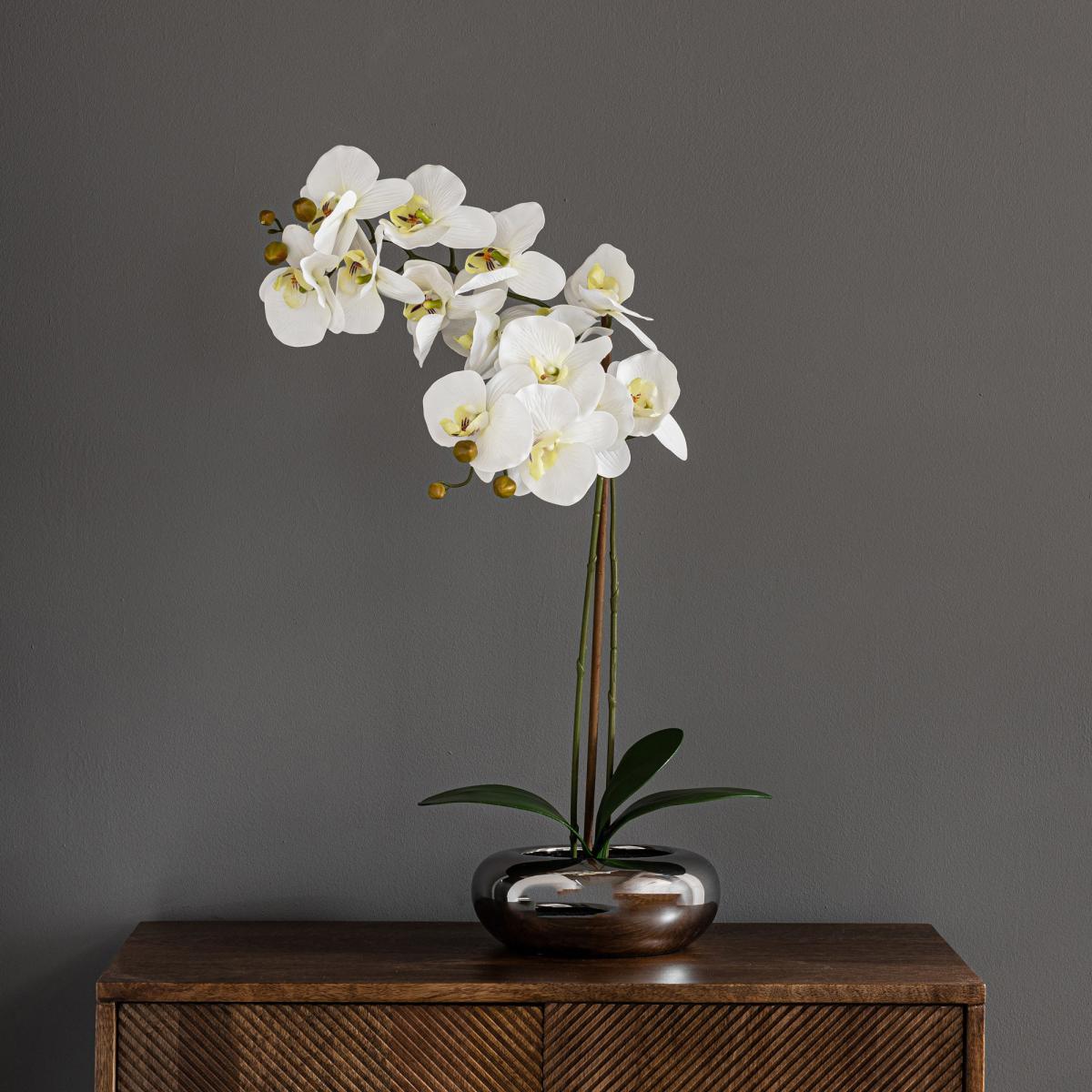 Real Touch 60cm Cream Orchid in Silver Pot Cream, Green and Silver