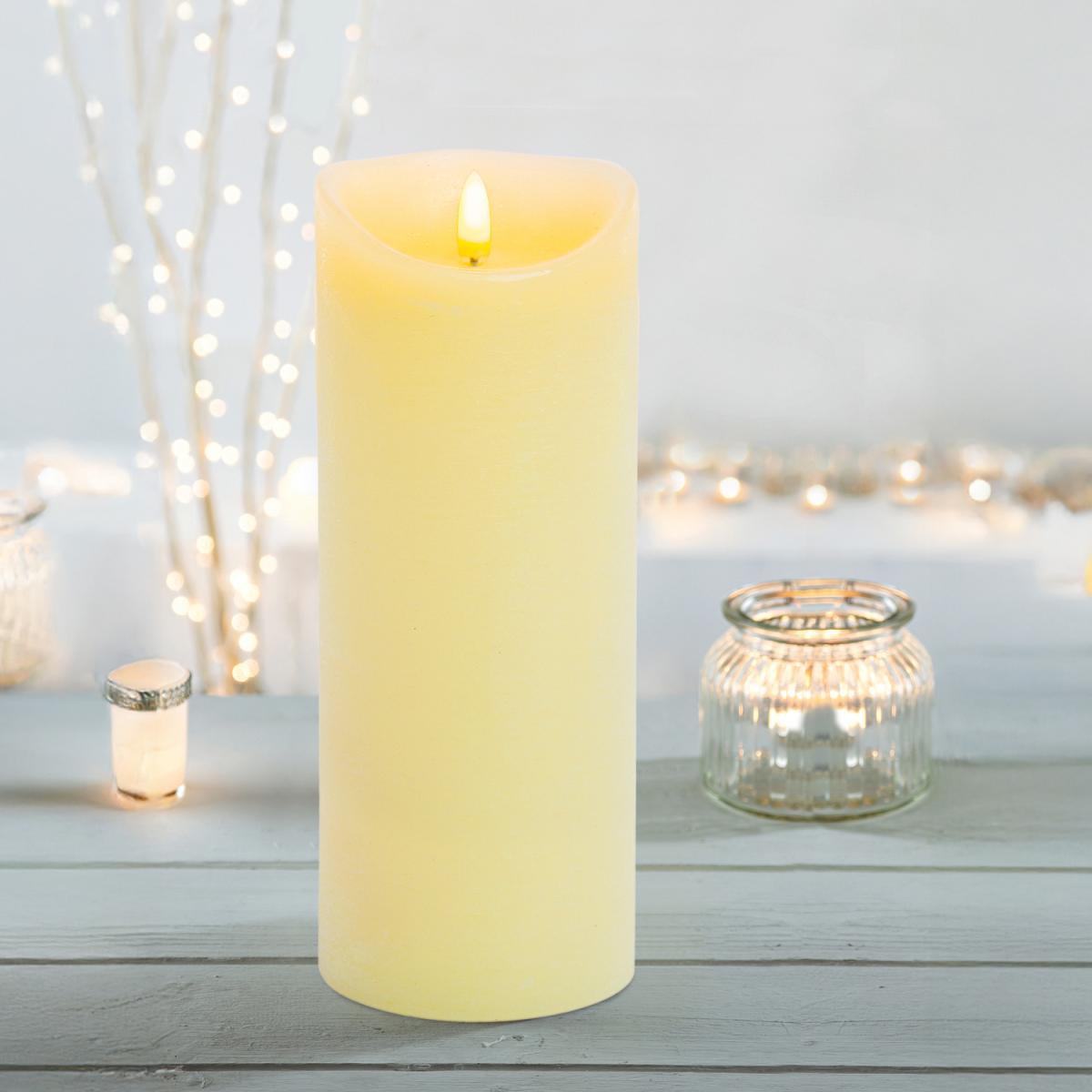 Premier 23cm Real Wax Dancing Flame Battery Operated Candle. REAL WAX WITH DANCING FLAME - This Real Wax Candle combines authentic craftsmanship with safety and style, bringing a warm and inviting glow to any room. Made from real wax, it features a soft-touch surface and a flickering warm white LED flame that perfectly mimics the gentle movement and ambience of a traditional candle, without the smoke, heat, or mess. TIMER FUNCTION - This elegant candle features a built in timer function, making it perfect for hands off ambiance. The built in timer function allows you to set the candle to automatically turn on for 6 hours and off for 18 hours, repeating daily. This saves battery life and ensures your candle is always glowing at the right time, whether it is for evening relaxation or special events. VERSATILE DECOR - The classic cream colour and warm white LED light blend seamlessly with any decor style modern, rustic, traditional, or minimalist. Perfect for creating ambiance during dinner parties, holiday gatherings, or even as a nightlight in bedrooms. TALL AND SLEEK - Standing at 23cm tall with a 9cm diameter, it provides a soft, warm white light that complements any room. Standing at 23cm tall, this candle is a standout decorative piece that works beautifully on mantels, side tables, and as part of seasonal or event decor. It fits seamlessly into living rooms, dining tables, bedrooms, or for special events, adding a warm, inviting atmosphere. BATTERY OPERATED - Powered by 3 AA batteries (not included), this candle is completely portable and can be placed anywhere, from table tops to window sills, mantels, and even outdoor settings (when dry). The long lasting LED ensures minimal battery consumption, making it cost efficient and easy to maintain.