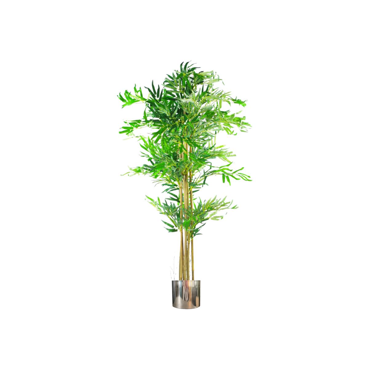 The classic indoor artificial plant- our artificial bamboo trees are fantastically realistic and require no maintenance! This design has natural brown bamboo canes - real ones- combined with artificial leaves and comes with a metal planter which can be used with the tree or separately. Highly realistic premium quality artificial plant. It comes potted in a plain plastic pot and includes a separate metal planter for it to sit inside as shown so it is ready to display. Plant and planter can be used separately if required. Genuine Leaf Design Product. We stock a wide range of specialist realistic artificial plants and trees.