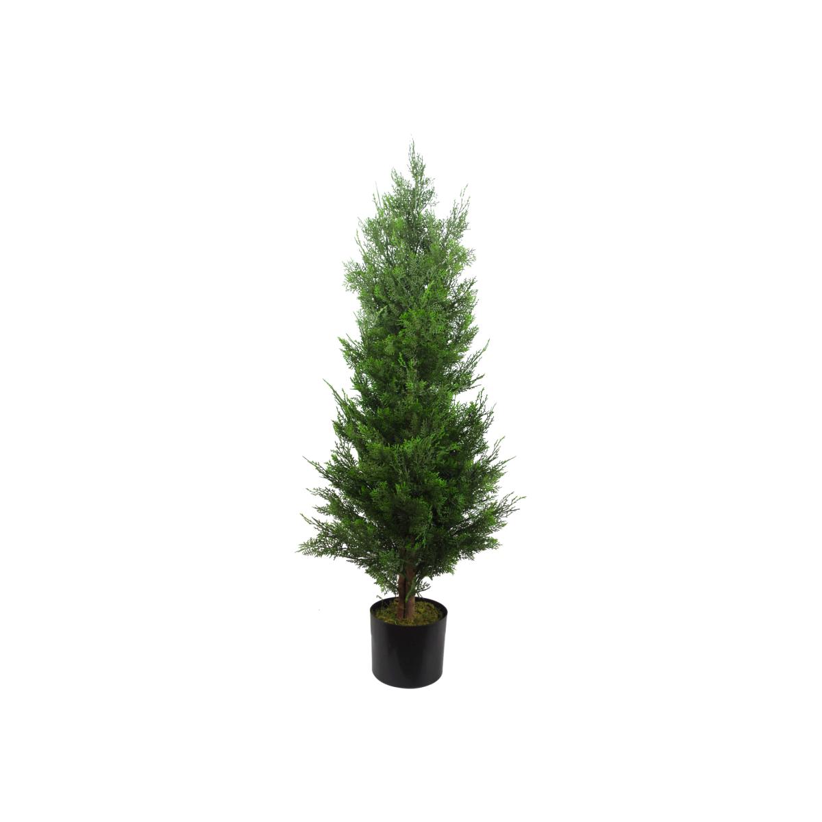 Ultra realistic natural looking artificial tree. Our artificial cedar trees have ultra realistic foliage- real wood trunks and they are certainly easy to mistake for the real thing. These look fantastic when placed inside a large tub or planter and are suitable for use both indoors and outdoors. Natural bushy shape. These artificial cedar trees are available in a range of sizes. This tree can be used indoors or outdoors in a sheltered spot. We recommend protecting from extremes of temperature to extend life. Stems are wired so this can be arranged to fit your space perfectly. It is highly realistic with botanically accurate foliage. Our fake cedar trees look very realistic even down to the slightly lighter green tips of the leaves. It comes potted in a plain plastic pot and is ready to display. You can easily put this inside a larger planter if you wish.