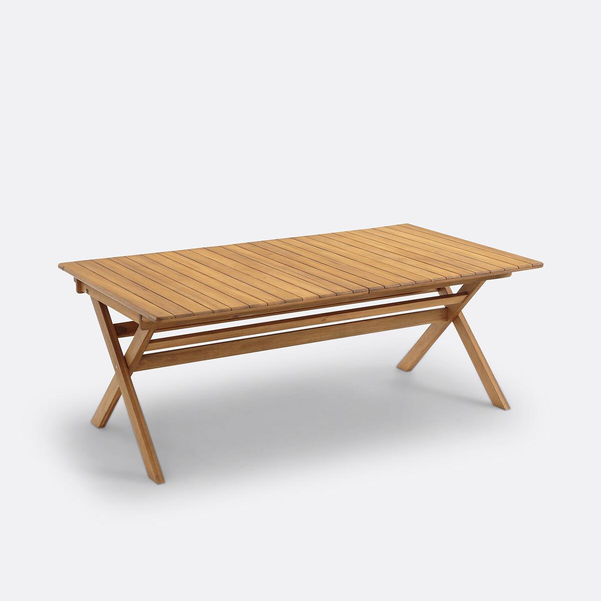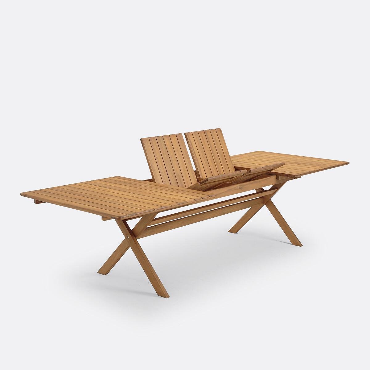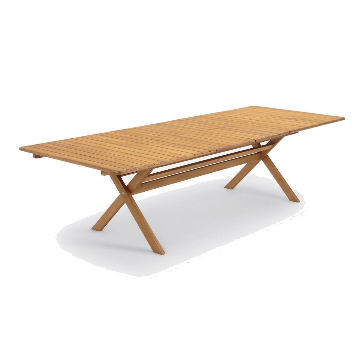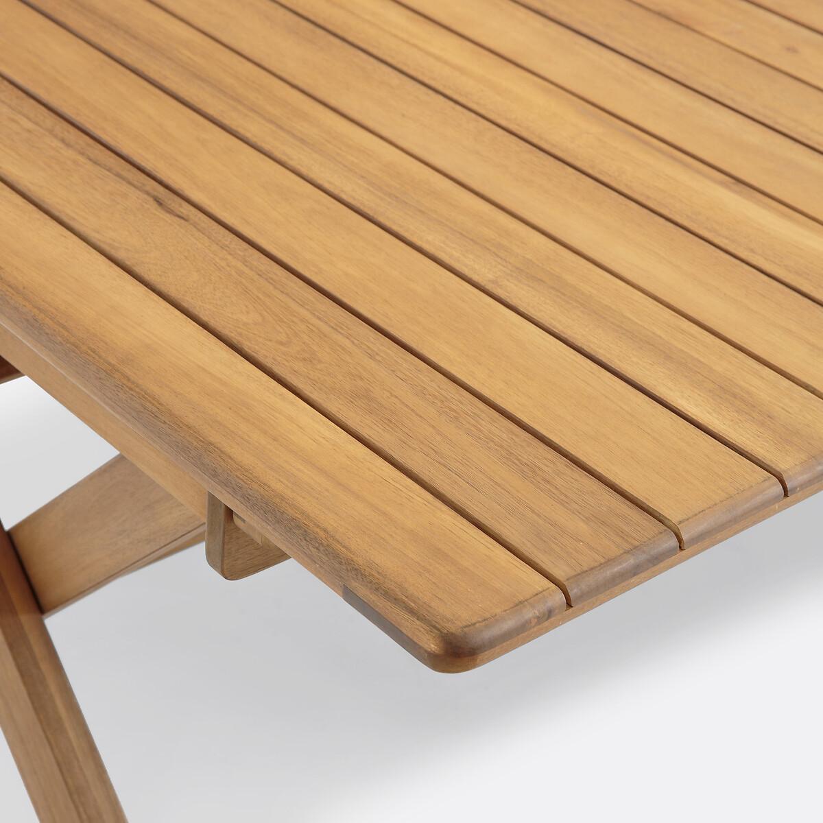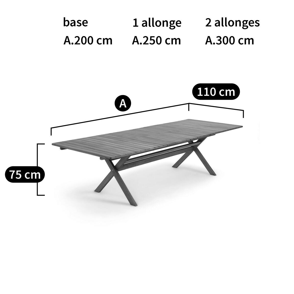 The Réalto garden table is ideal for every social occasion thanks to its 2 butterfly extensions which easily allow it to accommodate 8 to 12 guests, sizing up to 3 metres in length!Practical for storage, it has a folding base so you can easily store it and enjoy it for several summers. Product Details • Rectangular table • Slatted tabletop • Butterfly extension system (2), easy and quick to install, the extensions slide under the tabletop • Folding base for easy storage • In acacia, oiled teak stained finish. FSC® certified wood Quality Info • Acacia is a wood that offers good mechanical properties (good resistance to insects and fungi) and is resistant to bad weather (alternation of dry and humid periods).Dimensions • Length: 200cm without extension • Length: 250cm with 1 extension • Length: 300cm with 2 extensions • Height: 75cm • Depth: 110cm • Weight: 46kgDelivery:. This product is sold ready to assemble. Note! Please check that all access points are large enough to accommodate your delivery (doors, stairs, lifts). • WOOD FROM SUSTAINABLY MANAGED FORESTS. FSC® certified wood comes from forests that are environmentally, socially and economically well managed. Dimensions and weight of parcel1 parcel • L206 x D118 x H19cm. 55kg