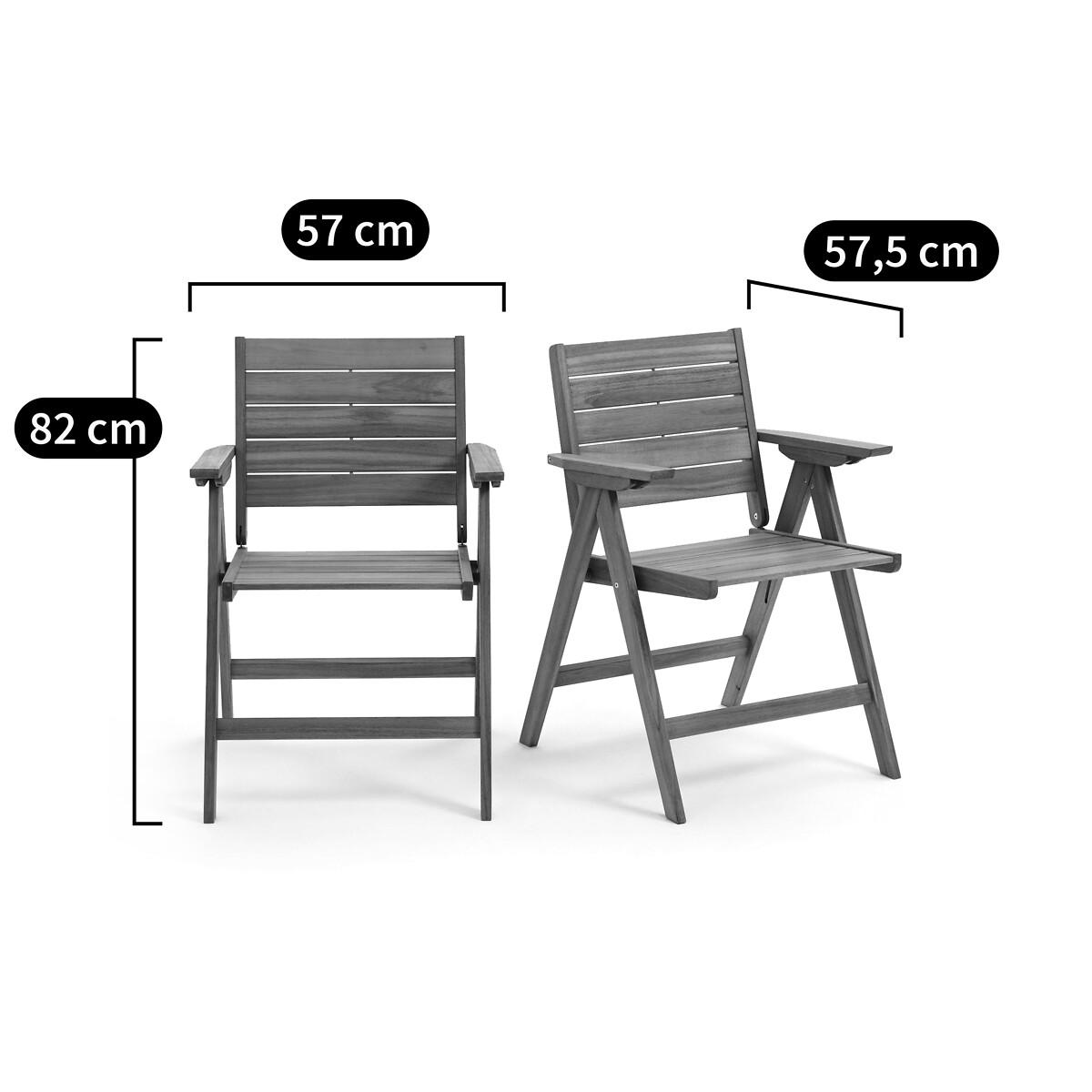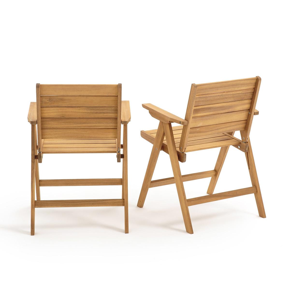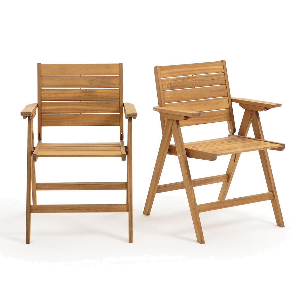 The Realto folding armchairs are comfortable thanks to their 3 adjustable seating positions. Practical, they fold for easy storage with their space saving design. These armchairs perfectly complement the Realto garden table to be found on laredoute.co.uk. Product Details • Set of 2 folding table armchairs, with armrests • Slatted back and seats • In acacia, oiled teak stained finish. FSC certified wood • Backrests adjust to 3 positions Quality Info • Acacia is a wood that offers good mechanical properties (good resistance to insects and fungi) and is resistant to bad weather (alternation of dry and humid periods).Dimensions. Total • Length: 57cm • Height: 83cm • Depth: 59cm. Usable space • Seat: L46 x D45.6 x H46cm • Folded chair: L57 x D15 x H82.5cm • Weight of 1 chair: 5.5kgDelivery:. Sold pre-assembled. Note! Please check that all access points are large enough to accommodate your delivery (doors, stairs, lifts). • WOOD FROM SUSTAINABLY MANAGED FORESTS. FSC® certified wood comes from forests that are environmentally, socially and economically well managed. Dimensions and weight of parcel1 parcel • L88.5 x D61.5 x H32cm. 14.5kg