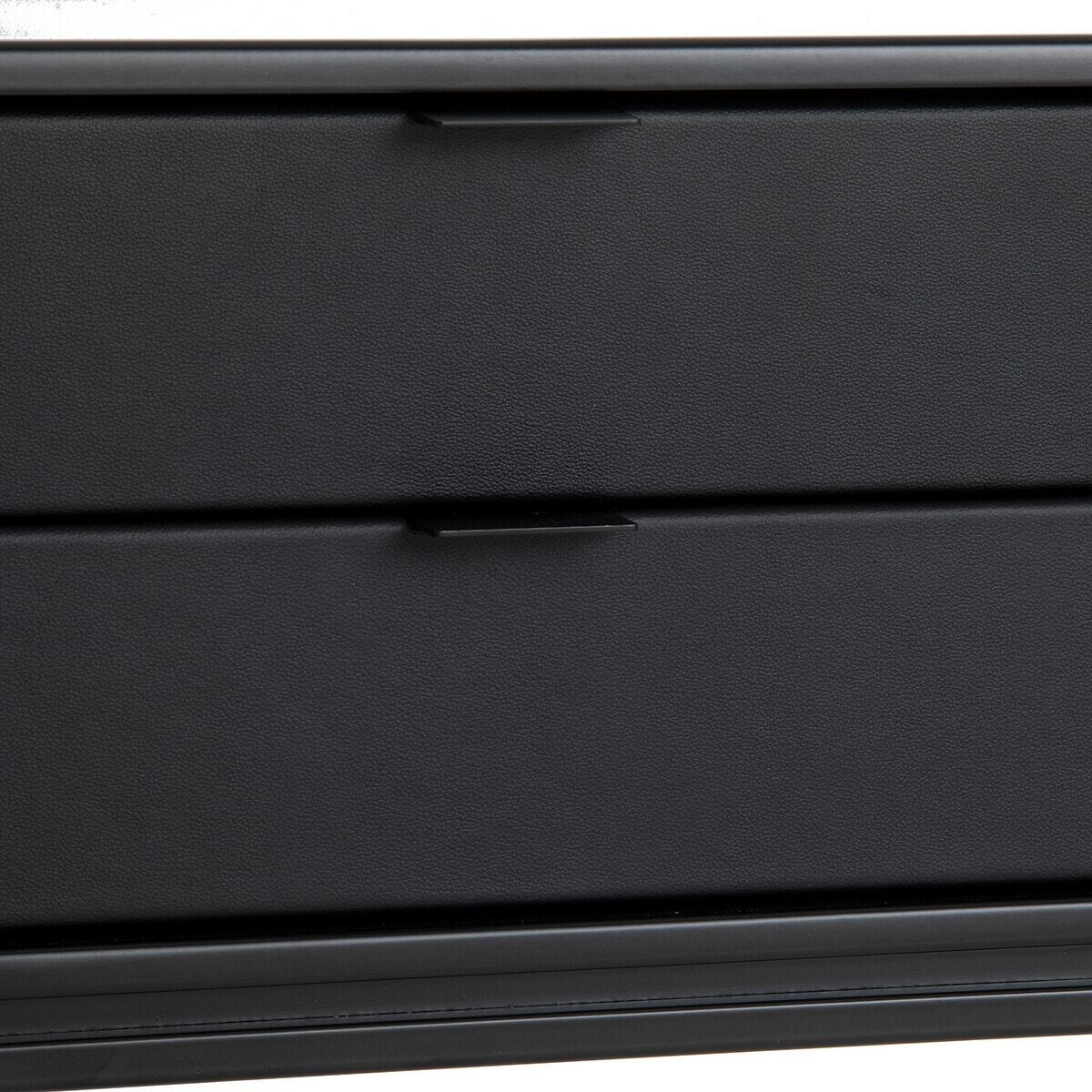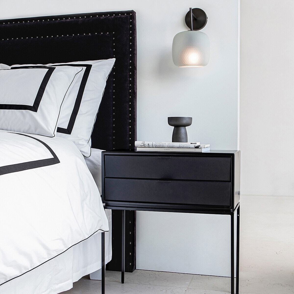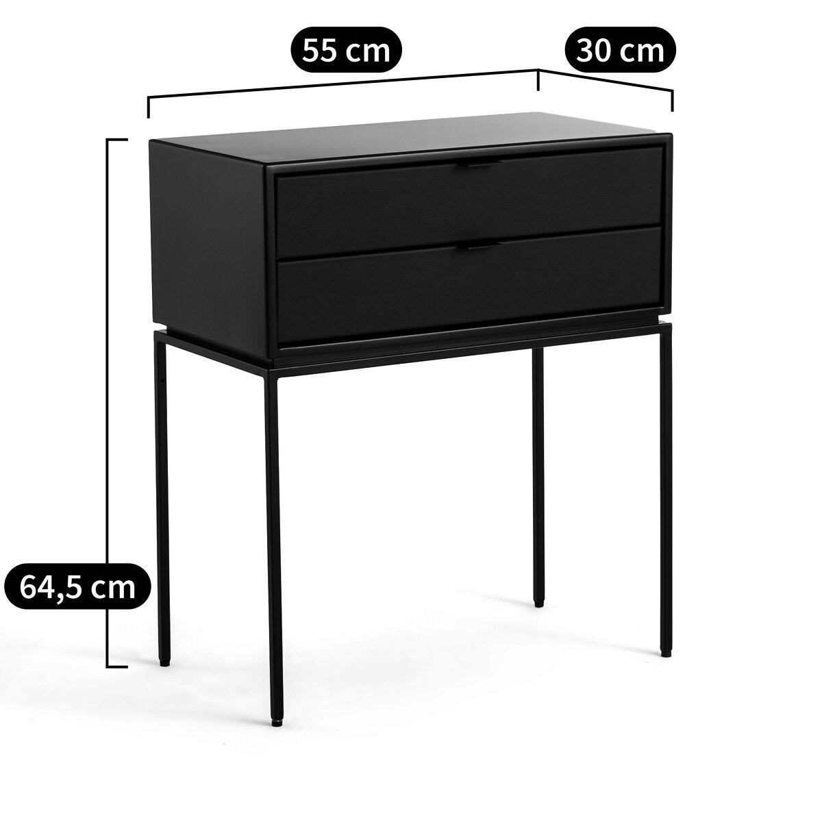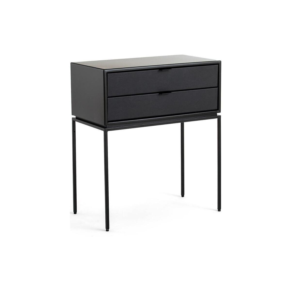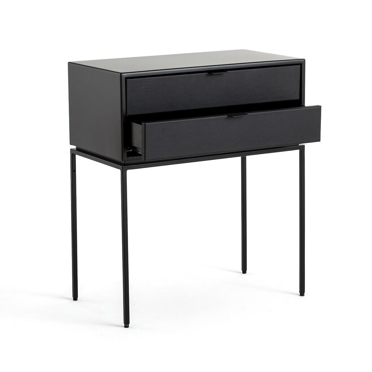 The Réalto Metal & Leather Bedside Table. With its drawer fronts covered in leather and its fine metal base, the Réalto bedside table will bring a modern, stylish feel to your home. Product Details. Structure, base and handles in matt black metal, epoxy finish. Fronts of the 2 metal drawers covered with Italian leather (full grain cowhide leather, aniline finish, chrome tanning)Dimensions. Width: 55cm. Height: 64.5cm. Depth: 30cm. Useable size of drawers : L53 x D27 x H7cm Delivery:Your bedside table is sold with feet to assemble yourself, the instructions are attached. It will be delivered to your door!Note! Please check that all access points are large enough to accommodate your delivery (doors, stairs, lifts).Dimensions and weight of parcel. L63 x H49.5 x D33 cm. 26.5kg.