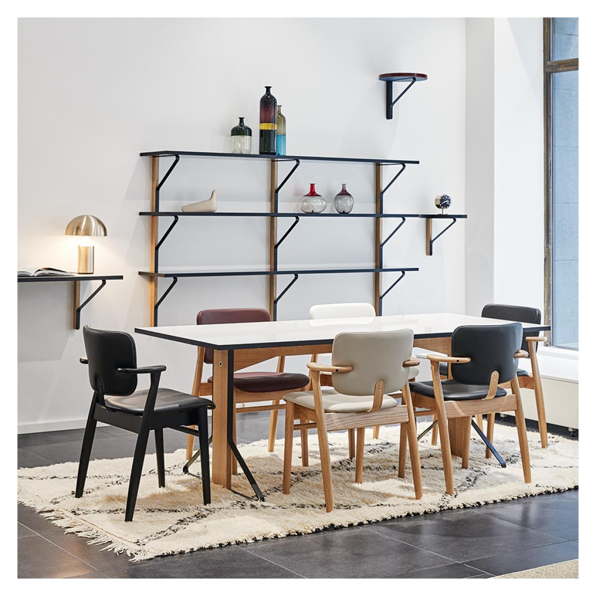 Premiered at the Stockholm Furniture Fair in 2015, the characterful Kaari Storage Collection was designed by Ronan and Erwan Bouroullec for Finnish design company Artek and is comprised of simple yet intelligent coat hooks and shelves, both freestanding and wall-mounted. Accented with a selection of lacquers and linoleums, the Kaari Storage Selection is a versatile range, offering single decorative wall shelves or vast storage concepts, making it perfect for everywhere from compact workspaces to roomy living areas. Crafted using natural oak and protective varnish, melamine and powder-coated surfaces, each piece in the Kaari Storage Collection offers longevity and quality, having been crafted to Artek’s incomparable standards. Within this collection is the striking Wall Shelf with a Fenix finish; exclusively available at The Conran Shop, Fenix is an innovative nanotech matte material that lends a fingerprint-free, soft touch effect. Designed by brothers and creative duo Ronan and Erwan Bouroullec, the Kaari Storage Collection showcases the pair’s distinctive style while upholding an affinity with Artek’s traditions, carving out a truly unique aesthetic. Founded in 1935 by Alvar and Aino Aalto, Maire Gullichsen, and Nils-Gustav Hahl, Artek introduced a new kind of every-day life environment, and today is renowned as one of the world’s biggest name in interior design.