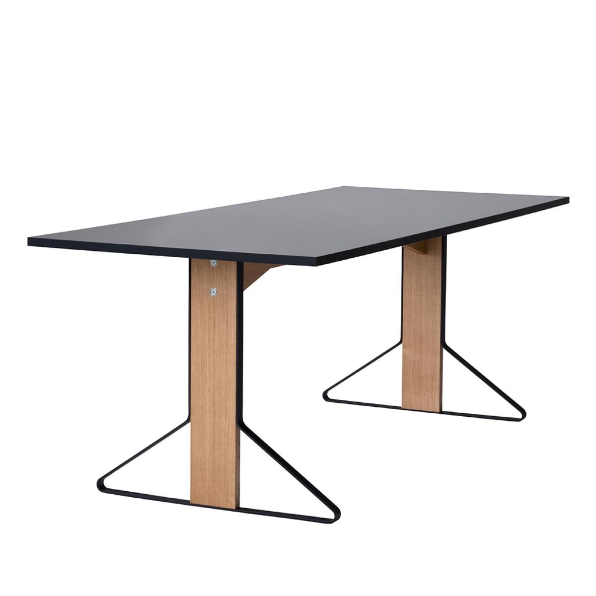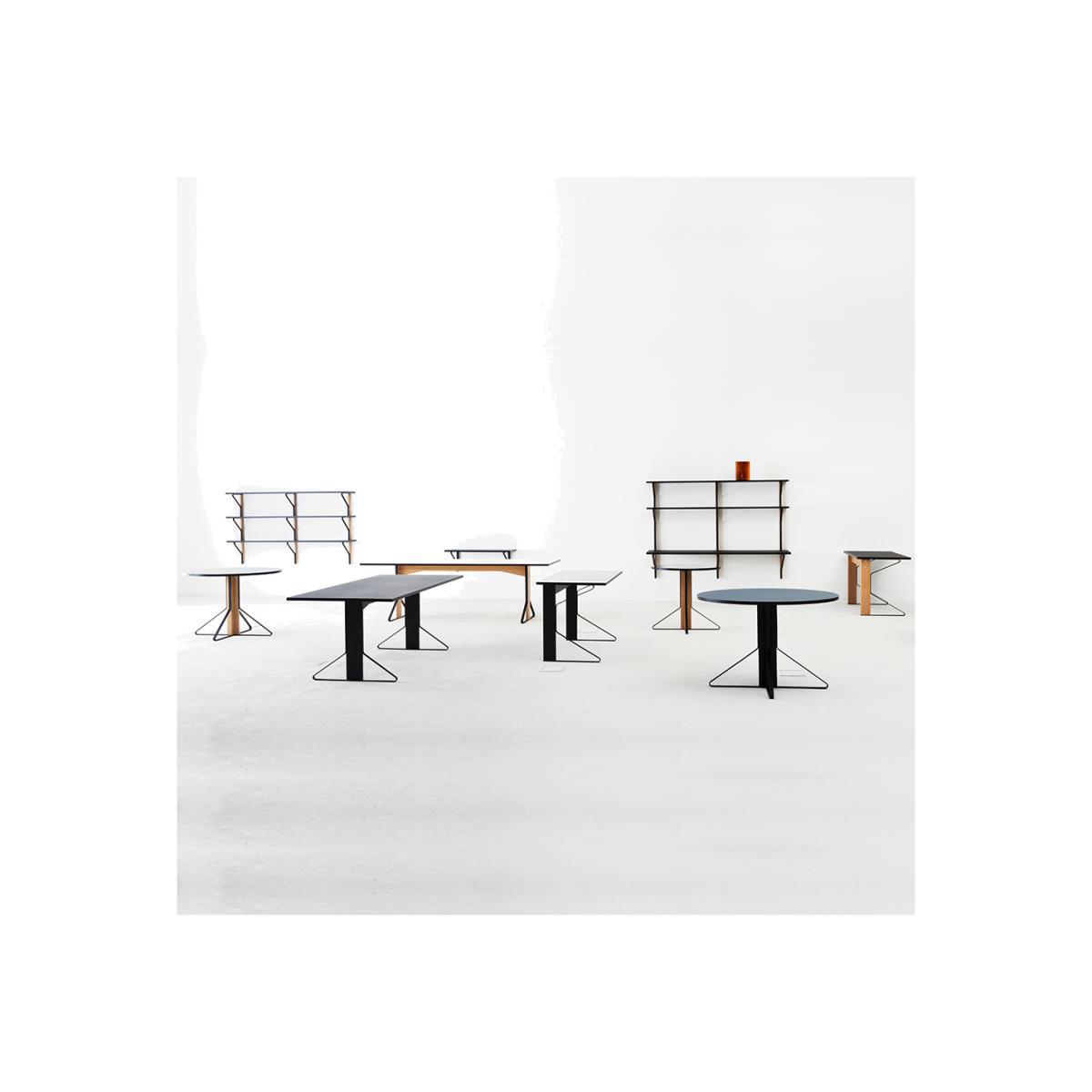 Premiered at the Stockholm Furniture Fair in 2015, the characterful Kaari Table and Desk Collection was designed by Ronan and Erwan Bouroullec for Finnish design company Artek and is comprised of simple yet intelligent desks and tables. Accented with a selection of shapes, sizes and finishes, the Kaari Table and Desk Collection is a versatile range, with sizes and concepts for every space and interior. Crafted using natural and lacquered oak, each piece in the Kaari Table and Desk Collection offers longevity and quality, having been crafted to Artek’s incomparable standards. Designed by brothers and creative duo Ronan and Erwan Bouroullec, the Kaari Table and Desk Collection showcases the pair’s distinctive style while upholding an affinity with Artek’s traditions, carving out a truly unique aesthetic. Founded in 1935 by Alvar and Aino Aalto, Maire Gullichsen, and Nils-Gustav Hahl, Artek introduced a new kind of every-day life environment, and today is renowned as one of the world’s biggest names in interior design.
