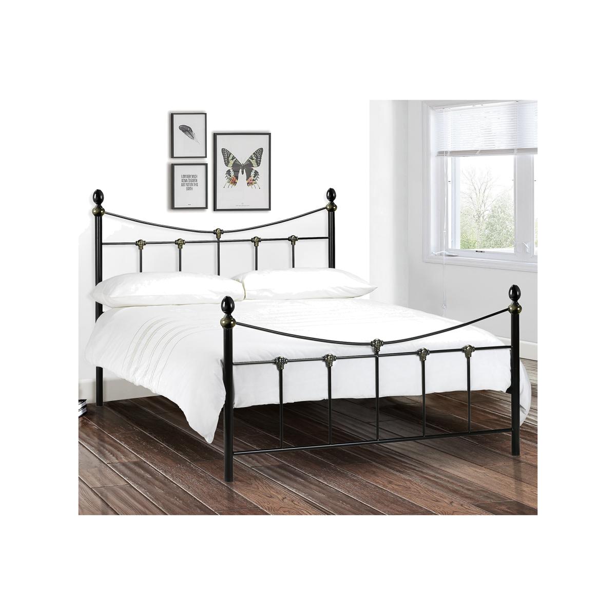 This classically curved Julian Bowen Rebecca Bed features a slatted steel headboard and footboard design finished with small finials on each post. A Victorian frame with a modern twist, this bed also has a sprung slatted base and an area under the bed, so you can easily store away your bedding, extra clothing, shoes and more, in boxes, creating a tidy home.