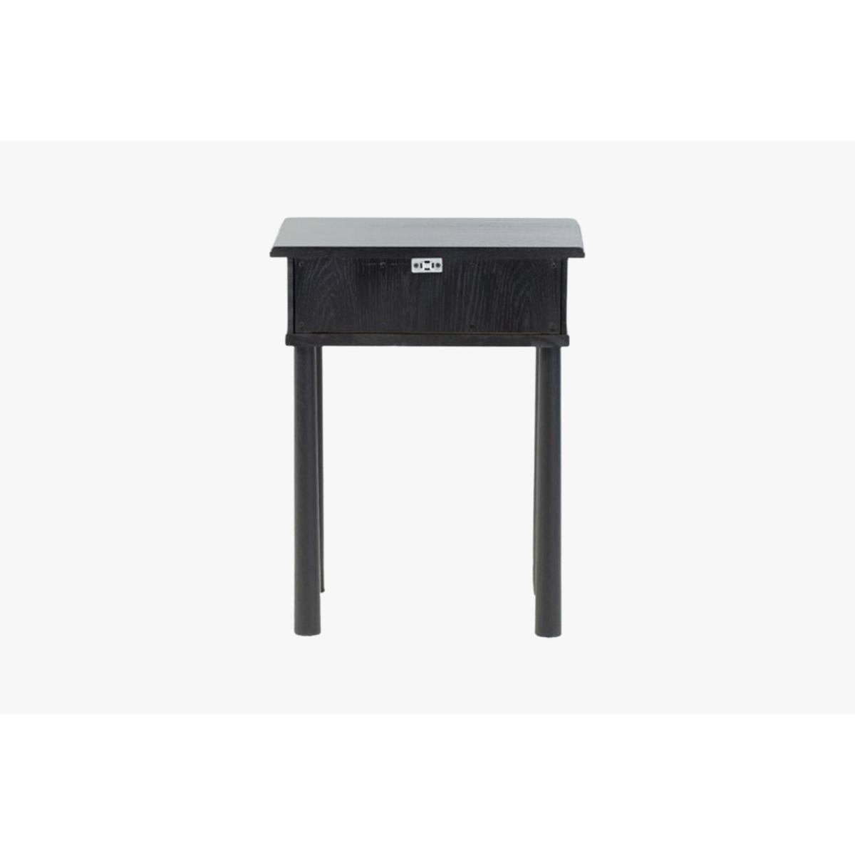 Wave the day goodbye in style with the Rebecca bedside table. Crafted from robust oak wood, the Rebecca draws its Nordic inspiration and puts it on display with its beautiful simplicity. Tall legs with rounded edges lift its compact body, complete with a handy drawer - on wooden runners - to store your bedtime essentials. Adding to its minimal style, the subtle finish throughout lets the prominent wood grain shine in its very own right. Sturdy but visually unobtrusive, the Rebecca is the perfect finishing touch to create a calming oasis in your contemporary bedroom.