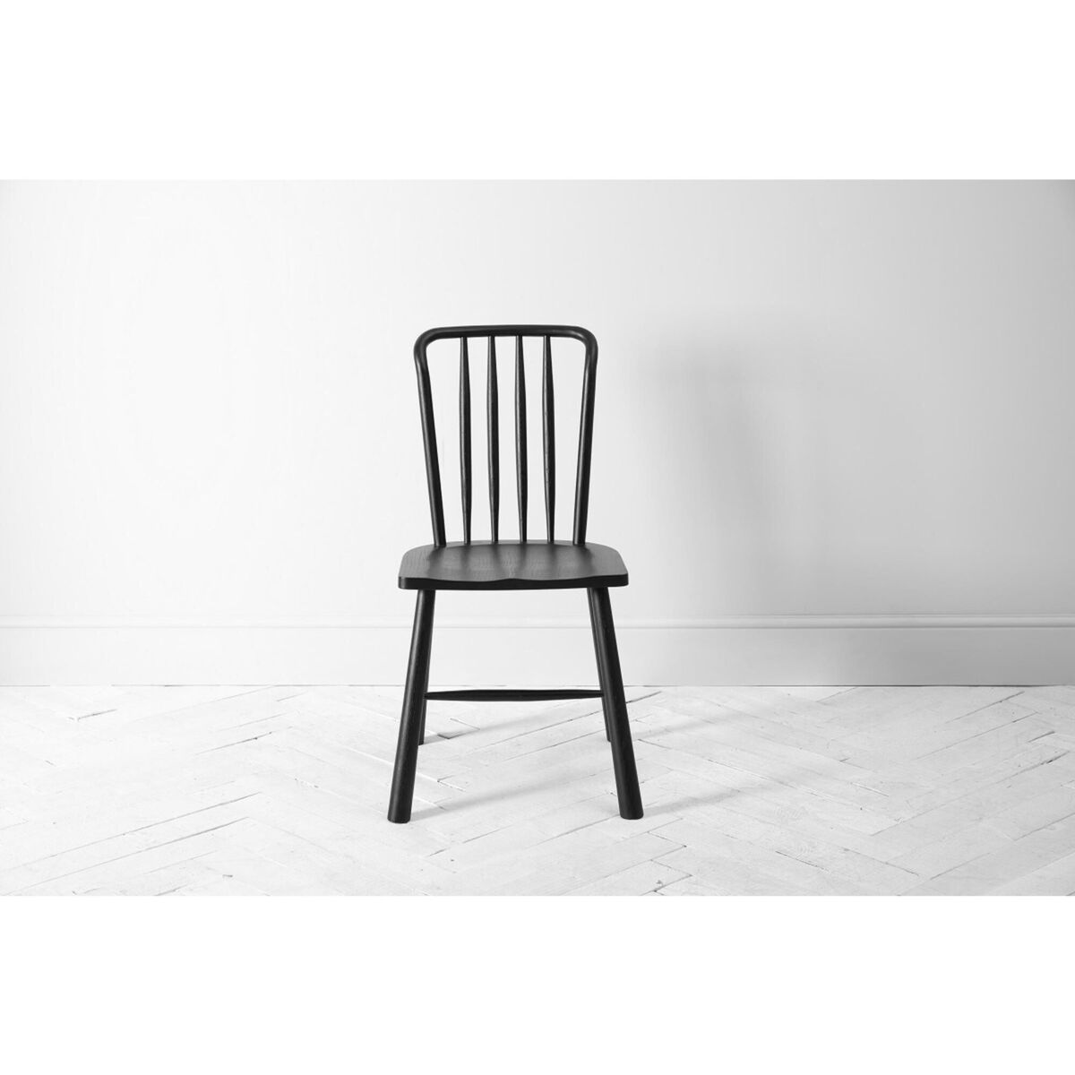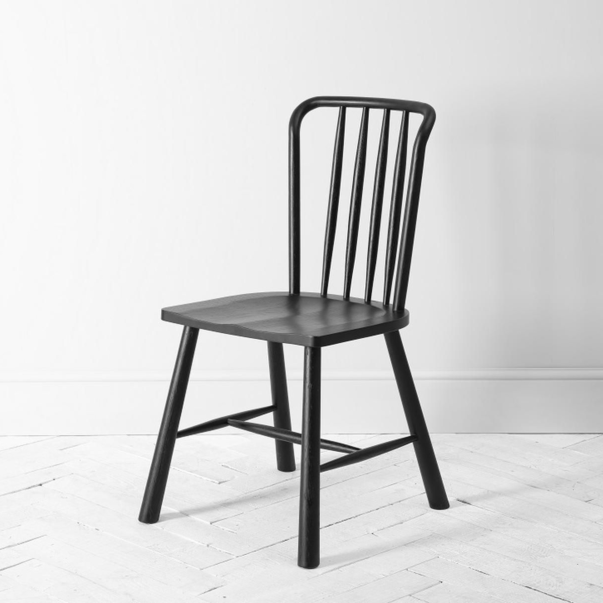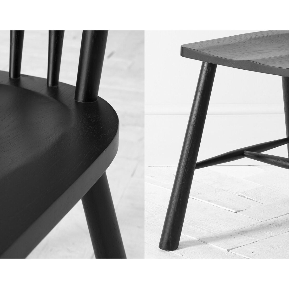 The Rebecca dining chair adds a Mid-Century twist to the iconic Windsor chair. This sturdy spindle-back chair is made to last, beautifully crafted from solid oak and coated in a rich black finish for a sharp, sophisticated look. The Rebecca is a superb choice to recreate the effortlessly stylish essence of Nordic style in your own home, team it with the matching dining bench to make a grand statement. Discover: The Rebecca Range