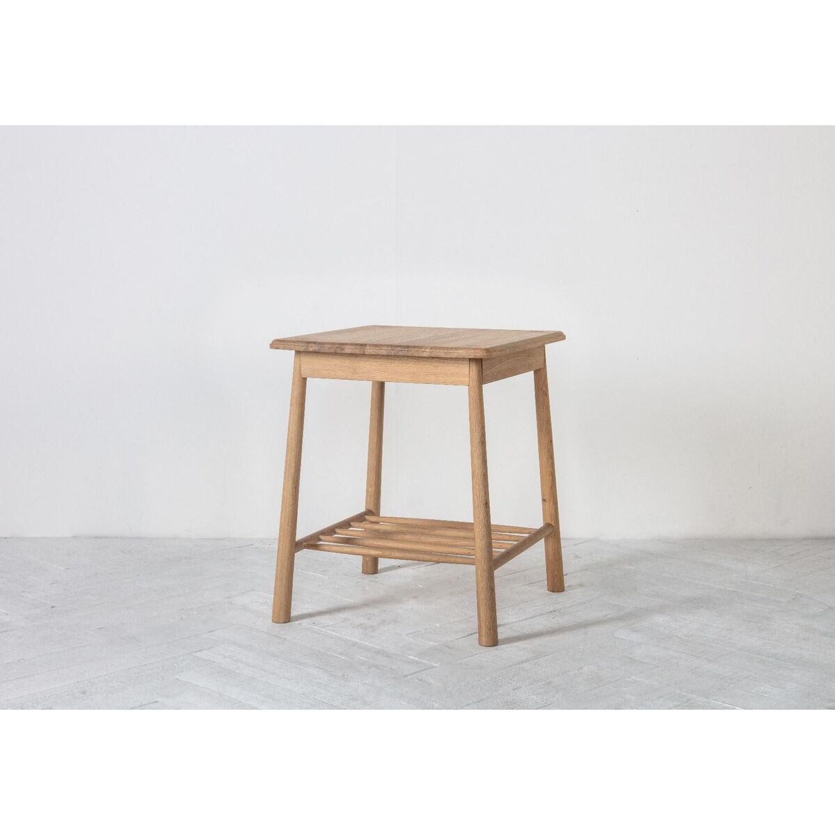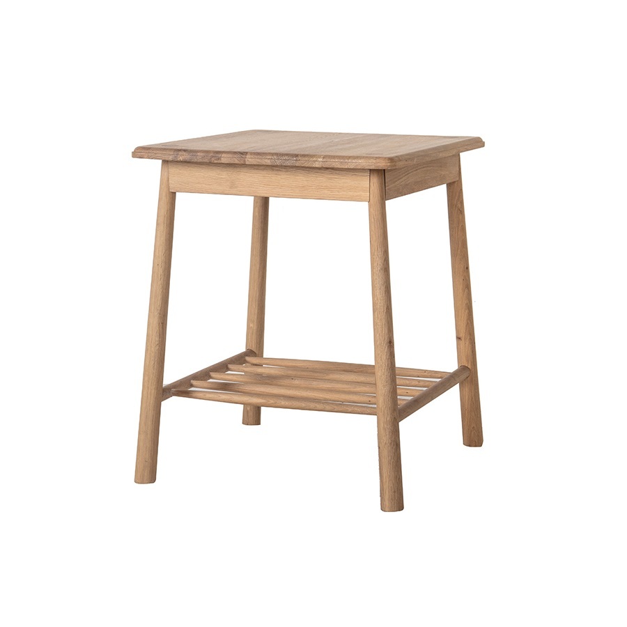I really like this oak side table for its clean lines and light finish - it feels right at home in Scandinavian, coastal or modern-farmhouse schemes. The lower slatted shelf is handy for a neat stack of books or a woven basket of throws, while the top works well with a small lamp, a plant in a ceramic pot and a couple of hardbacks. Its compact footprint makes it equally suitable as a bedside table or a sofa-side surface.