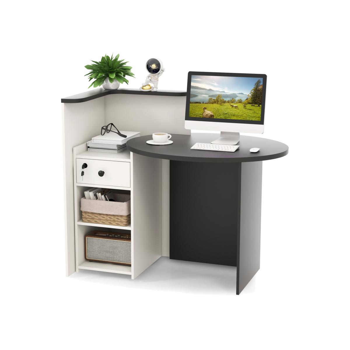 The reception desk keeps a good balance between practical use and stylish design! It comes with an L-shaped top shelf, wide desktop and 2-tier open shelf to make it possible to classify different kinds of items. The 3-position adjustable shelf also gives you customized storage space. Other than that, the front counter desk features a lockable drawer and high-side panels for property security and privacy. Furthermore, the home office desk can satisfy your desire on different occasions, such as company, lobby, store reception room, etc.