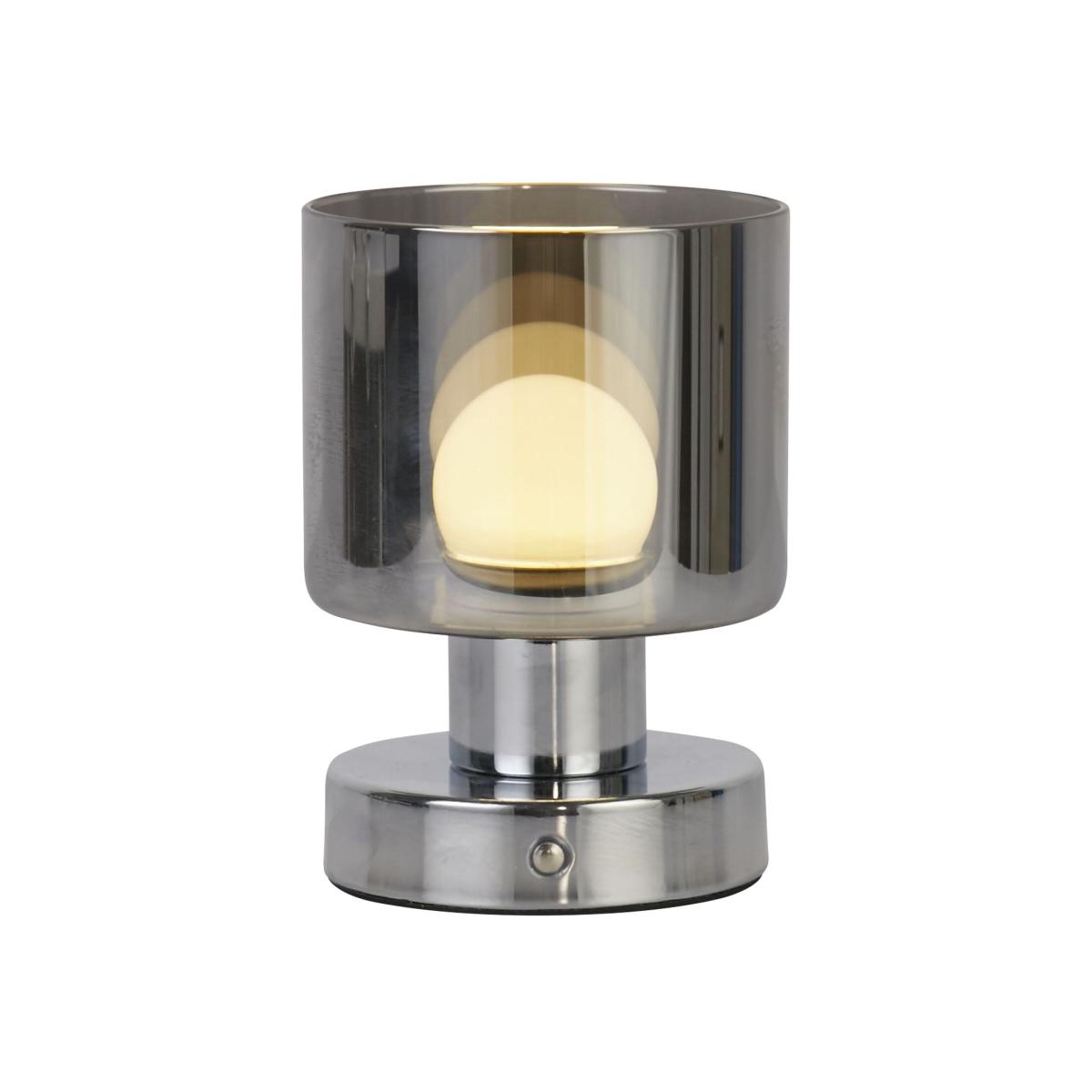 Rechargeable Chrome Smoke Glass Table Lamp - Silver