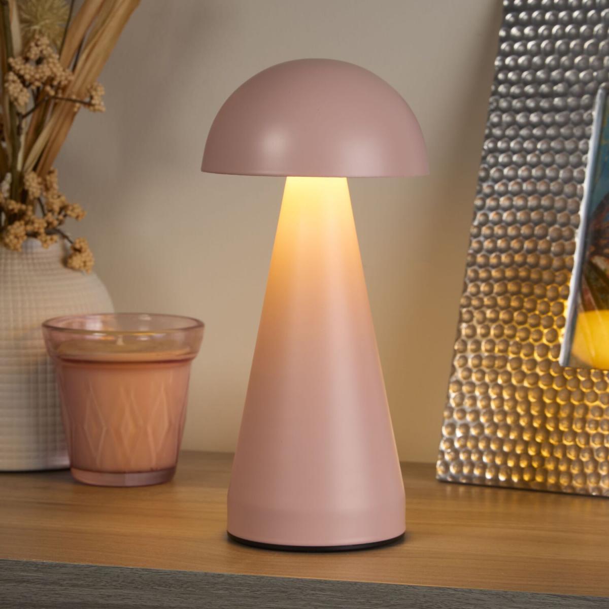 A playful tribute to natures organic forms, this mushroom inspired table lamp adds charm to any space with its calming pink finish. Compact at 21cm tall, its designed for versatility, featuring both USB and Type C charging alongside integrated LED technology (1500K-6500. K) for adjustable lighting moods. A discreet base button and touch-sensitive shade offer effortless control, allowing you to switch between warm ambient glows and crisp illumination. Perfect for bedside tables, workspaces, or cosy reading nooks, this energy-efficient lamp blends style and practicality with ease.