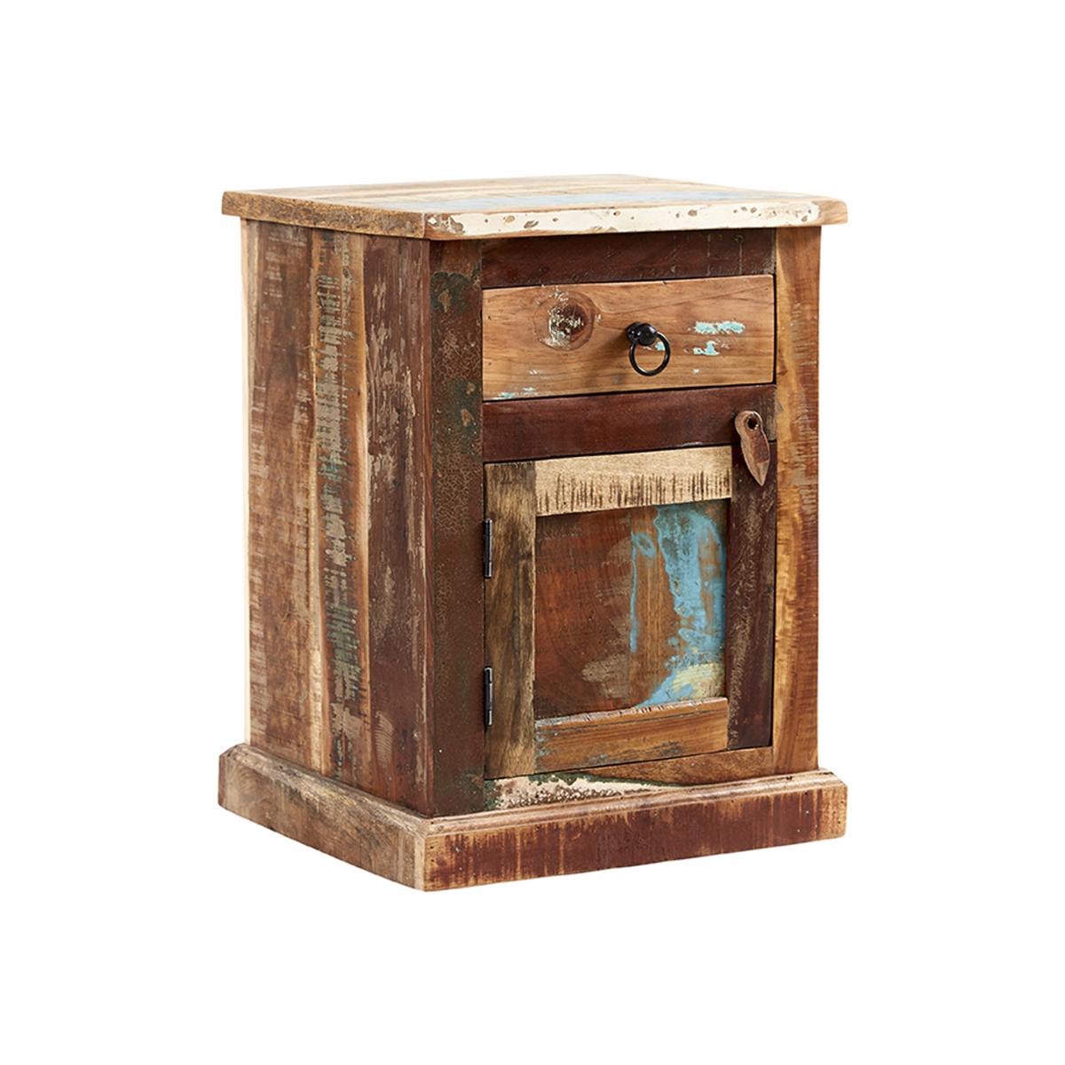I’m a big fan of this reclaimed boat table for the character it brings - every panel tells a different story and the uneven paintwork feels authentic rather than contrived. It sits naturally in a coastal-chic or boho setting but also adds warmth to an industrial loft or modern farmhouse. For styling, pair it with a simple linen-shade lamp and a small potted plant to soften the edges, and use a wicker tray or woven coaster to catch morning coffee. Inside the drawer and cupboard you can tuck away bedside essentials, keeping the top clutter-free and the focus on its unique timber tones.