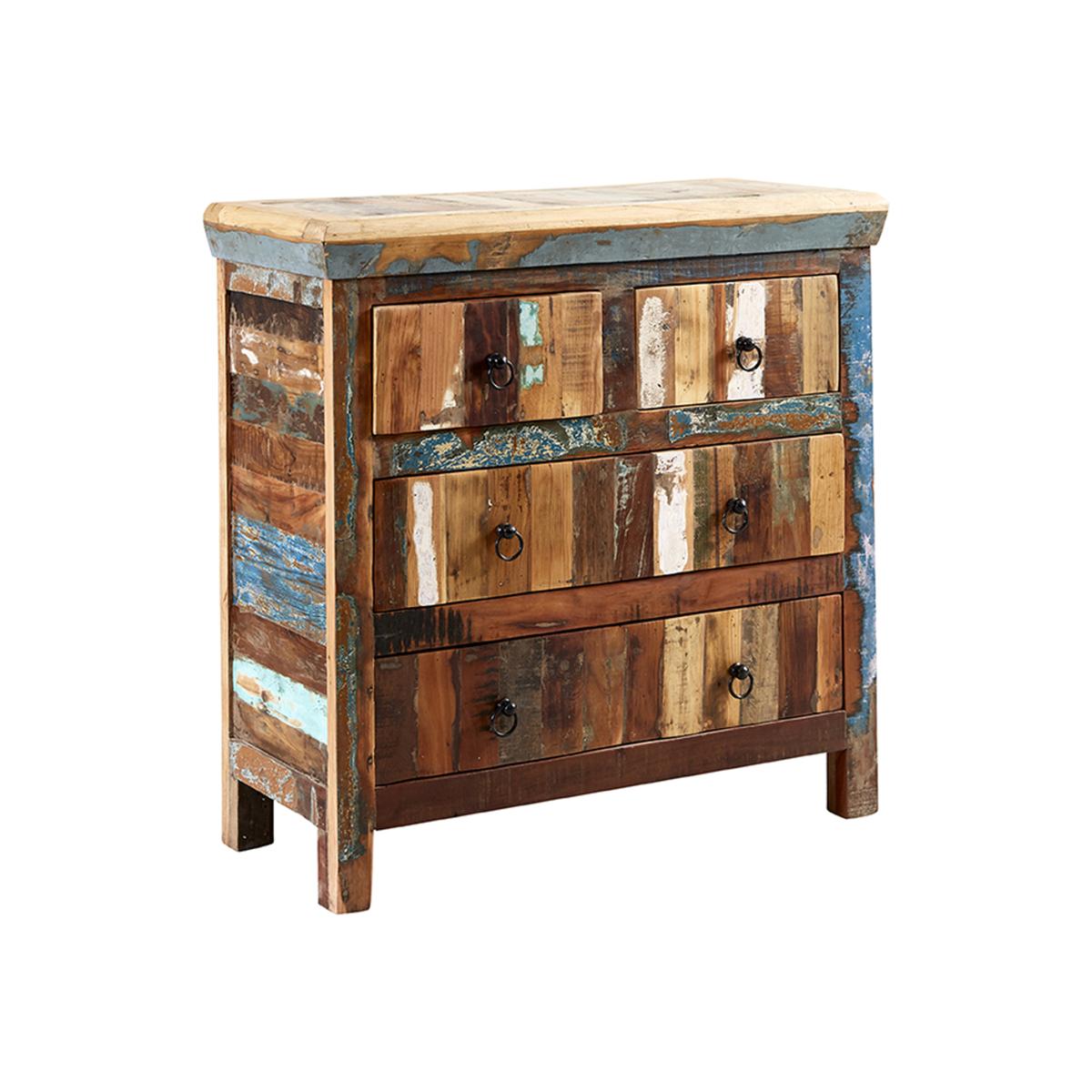 This 4 Drawer Chest is another reclaimed item in the Reclaimed dining and occasional furniture range from IH Design. This chest includes two large drawers, and two smaller upper drawers, that take up the majority of the front surface of the chest. These drawers will provide you with exceptional hidden storage space, that will prove invaluable in keeping any room in your home tidy and clutter-free. This chest of drawers also features a hard-wearing and spacious solid wood top surface, which is the ideal spot for anything from your house plants to your treasured picture frames.