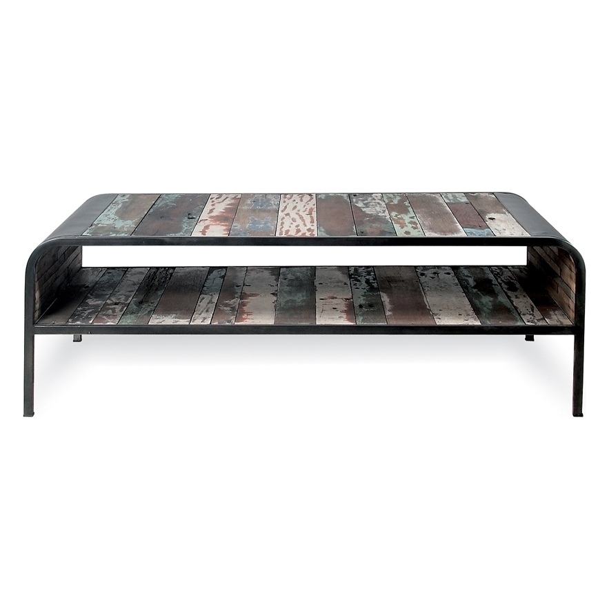 Reclaimed Coffee Table with Shelf in Recycled Boatwood