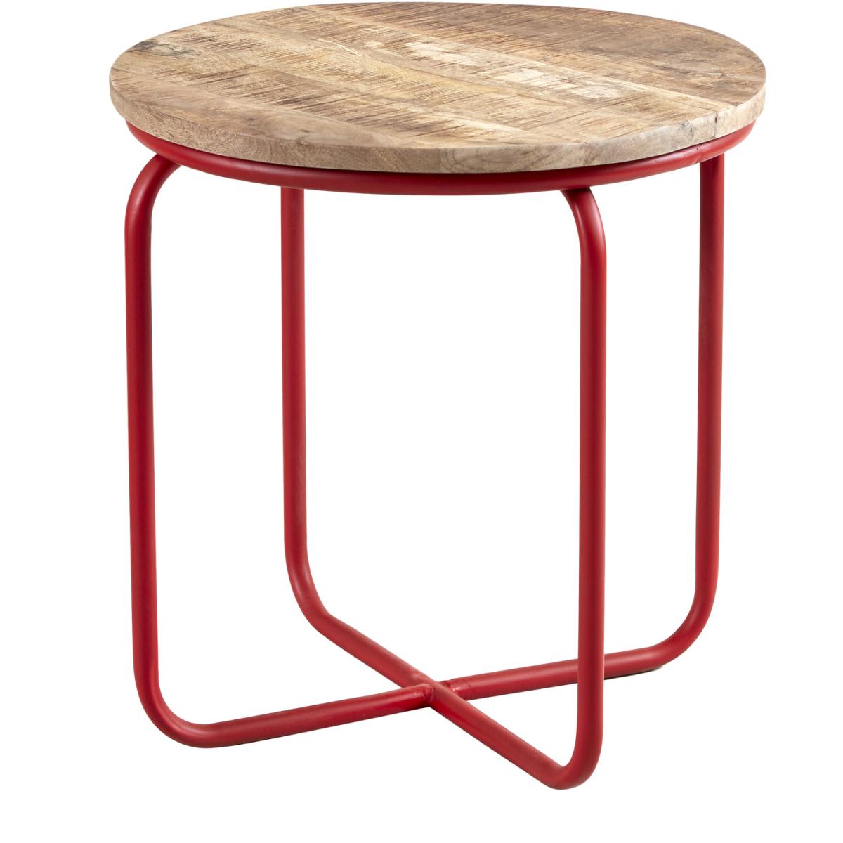 Reclaimed Metal and Solid Wood Top Round Bar Stool - Red