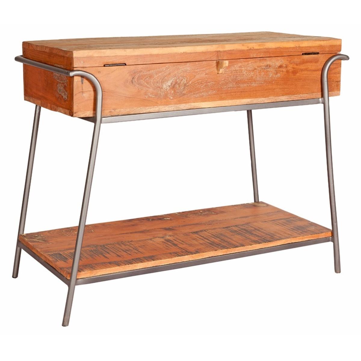 This versatile range is handcrafted in India, combining Metal with Reclaimed wood which creates a rustic look with a modern twist. Made From 100% Reclaimed Wood and Metal, this console table features an open shelf at the bottom of the unit and 1 box that offers storage space for your bits and bobs.