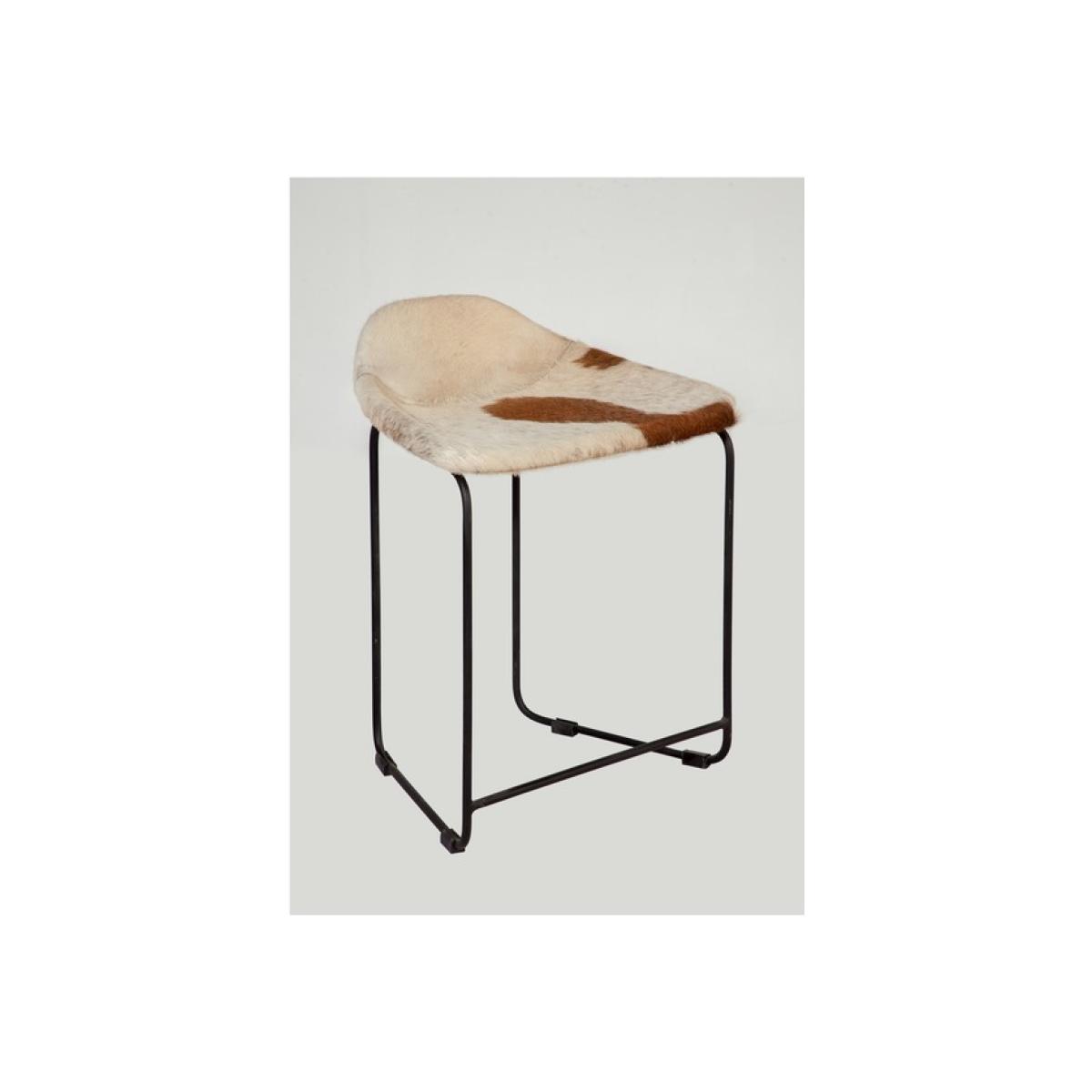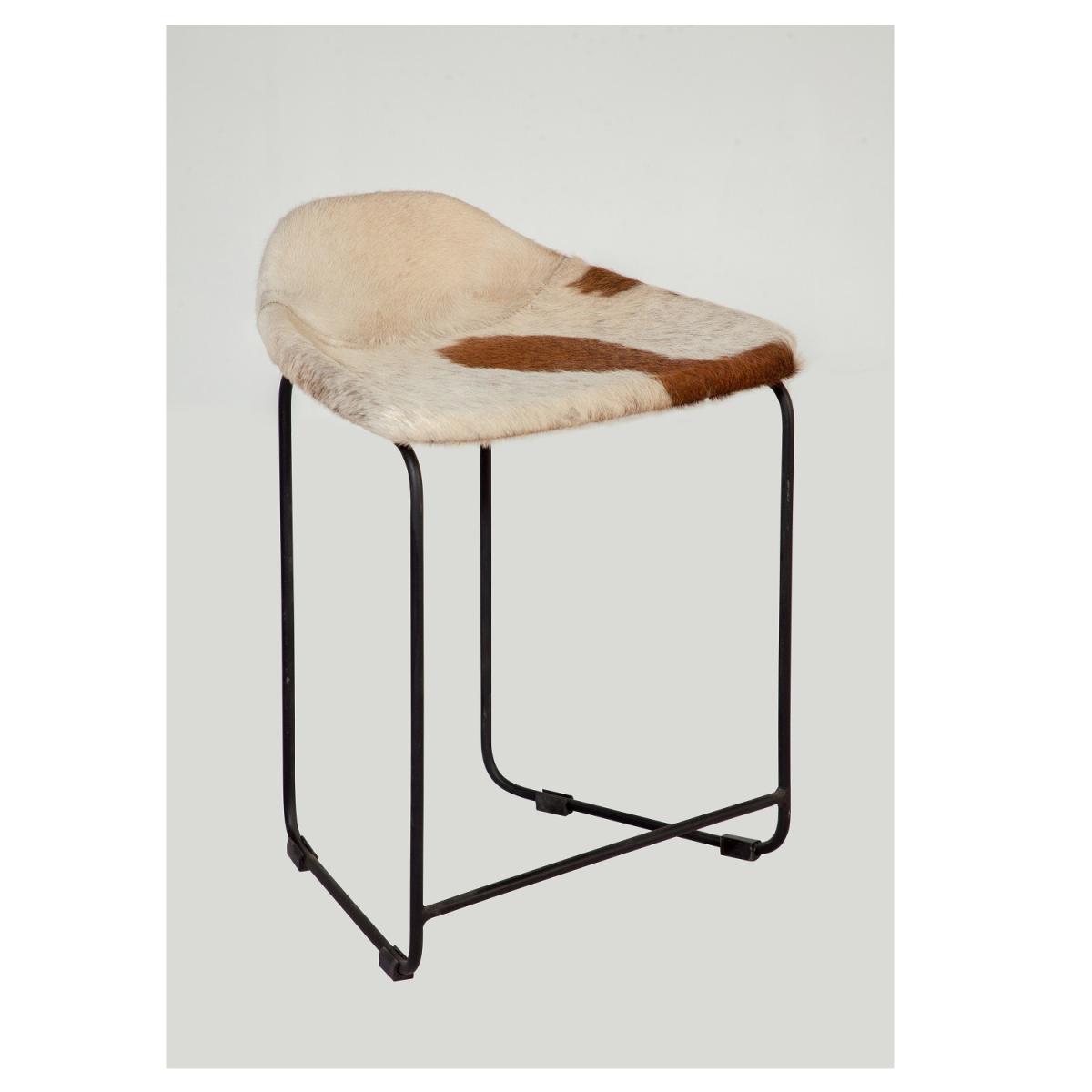 Reclaimed Metal Leather Stool Cowhide Pattern - Brown