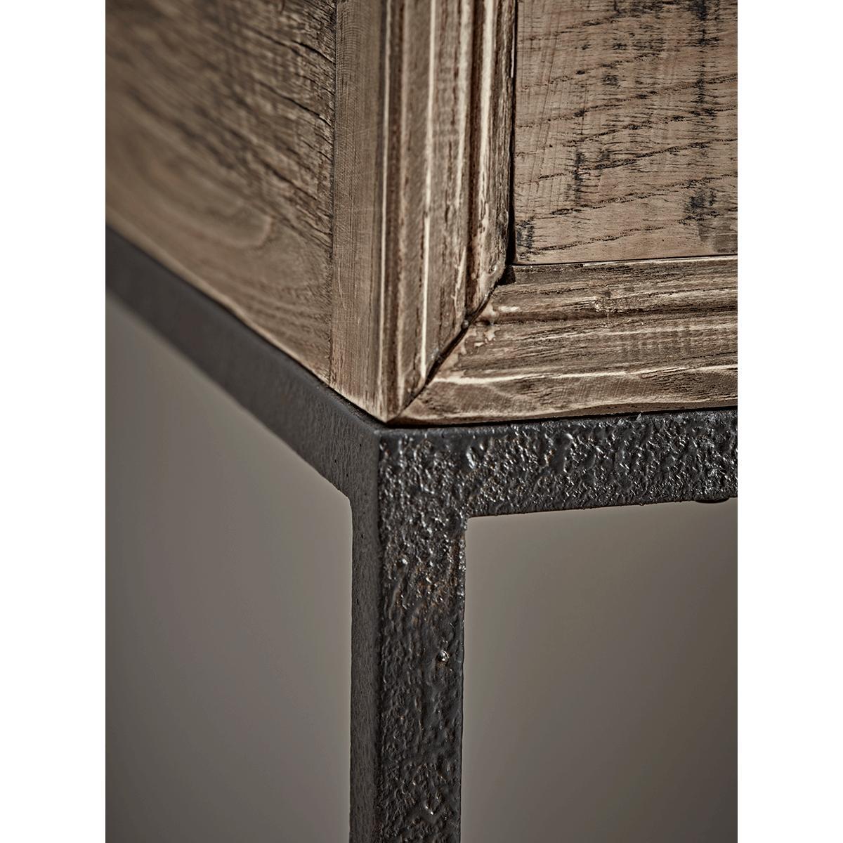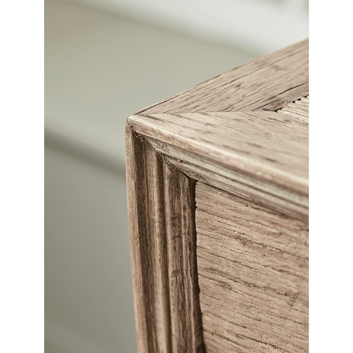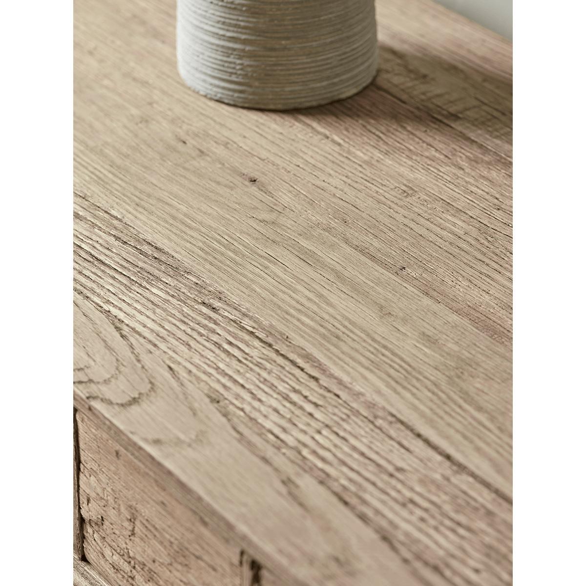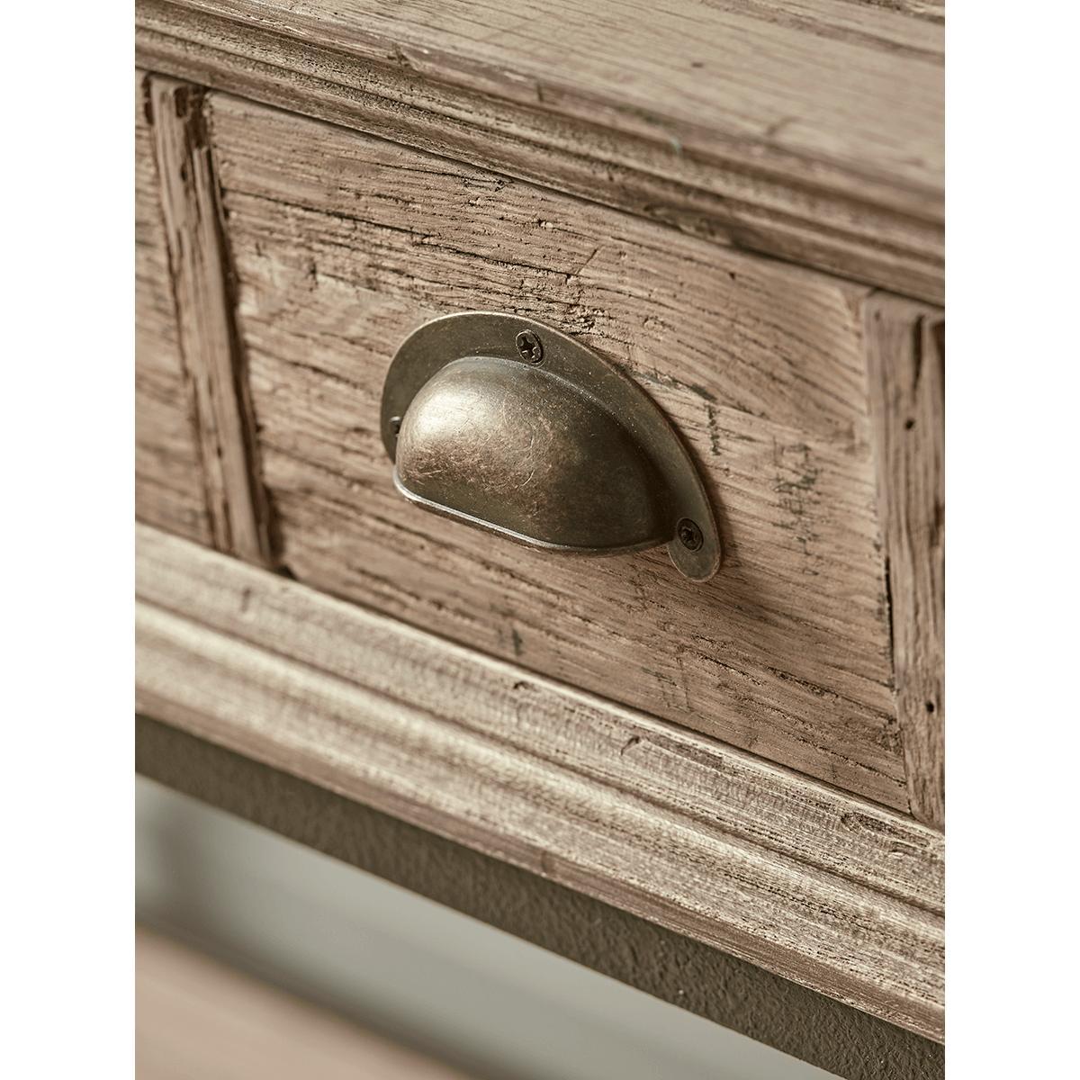 Substantial in size but perfectly slender and elegant, our reclaimed oak console table is a practical yet stylish accessory for your hallway or living space. It features an open shelf and three drawers with aged metal cup handles for ample storage space. Place beneath a large. Mirror. Or favourite artwork for a classic look.