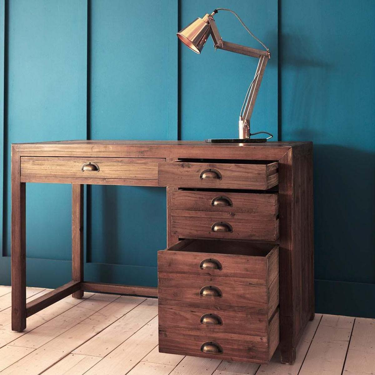 A handsome desk crafted from reclaimed pine wood featuring four drawers finished with vintage-inspired postmaster brass handles. Psst,. To download our handy guide to check if your new furniture will fit correctly into your space before you order.