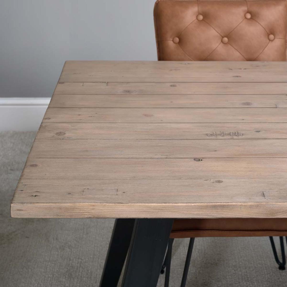 This reclaimed wood dining table from the Reclaimed Collection is topped with a smooth yet rustic drift wood-style reclaimed timber, in an exquisite pale tone. The sturdy painted wooden legs support this reclaimed wood table and give it an industrial feel. The reclaimed wood dining table pairs perfectly with the dining bench in the same collection. Crafted from smooth drift-wood style reclaimed timber. Dimensions W160cm x D85cm x H76cm Simple self assembly