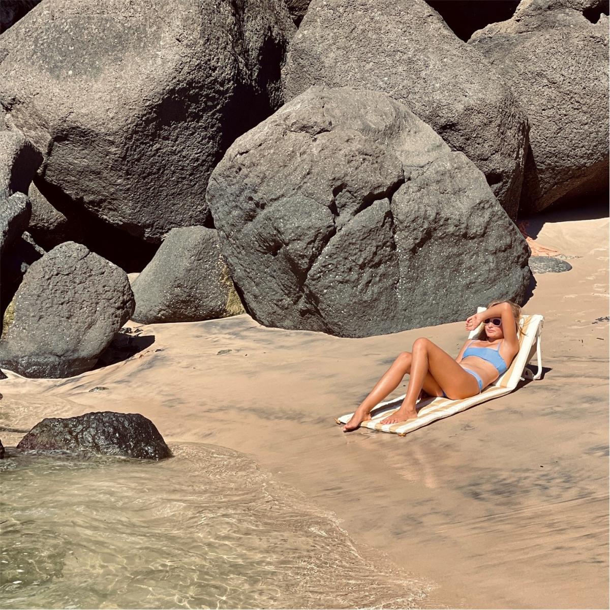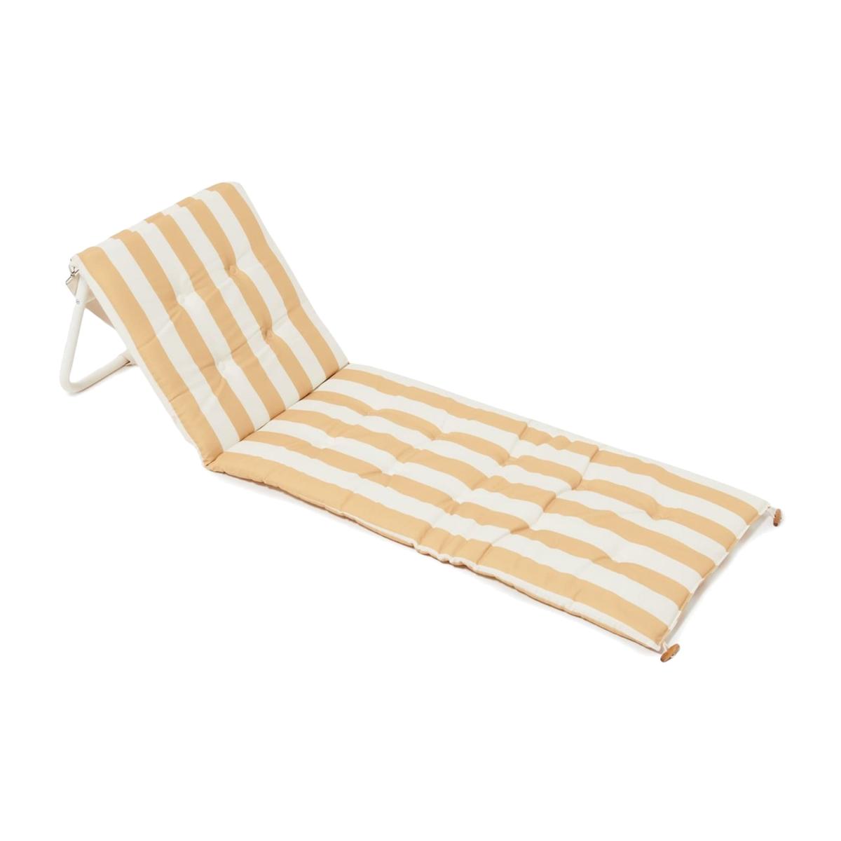 Recline in comfort with the ultimate outdoor chaise. The Recliner Beach Chair is extremely comfortable and chic for long days spent under the sun. Made from durable, water and fade resistant cushioned cotton canvas and featuring an adjustable backrest for extra comfort, relaxing has never been so easy. From beach to park to pool, simply fold it out on any surface and claim your sunshine with its vintage look. Soak up your surroundings in style with its stripe print that will have you mesmerised all day long.