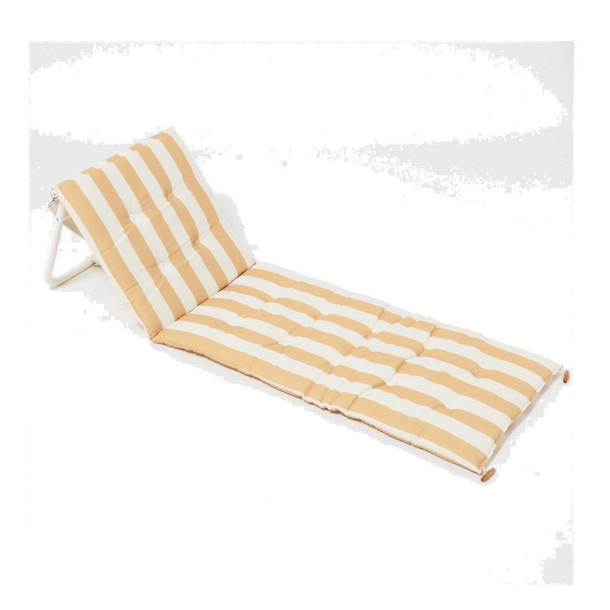 Recline in comfort with the ultimate outdoor chaise. The Recliner Beach Chair is extremely comfortable and chic for long days spent under the sun. Made from durable, water and fade resistant cushioned cotton canvas and featuring an adjustable backrest for extra comfort, relaxing has never been so easy. From beach to park to pool, simply fold it out on any surface and claim your sunshine with its vintage look. Soak up your surroundings in style with its stripe print that will have you mesmerised all day long.