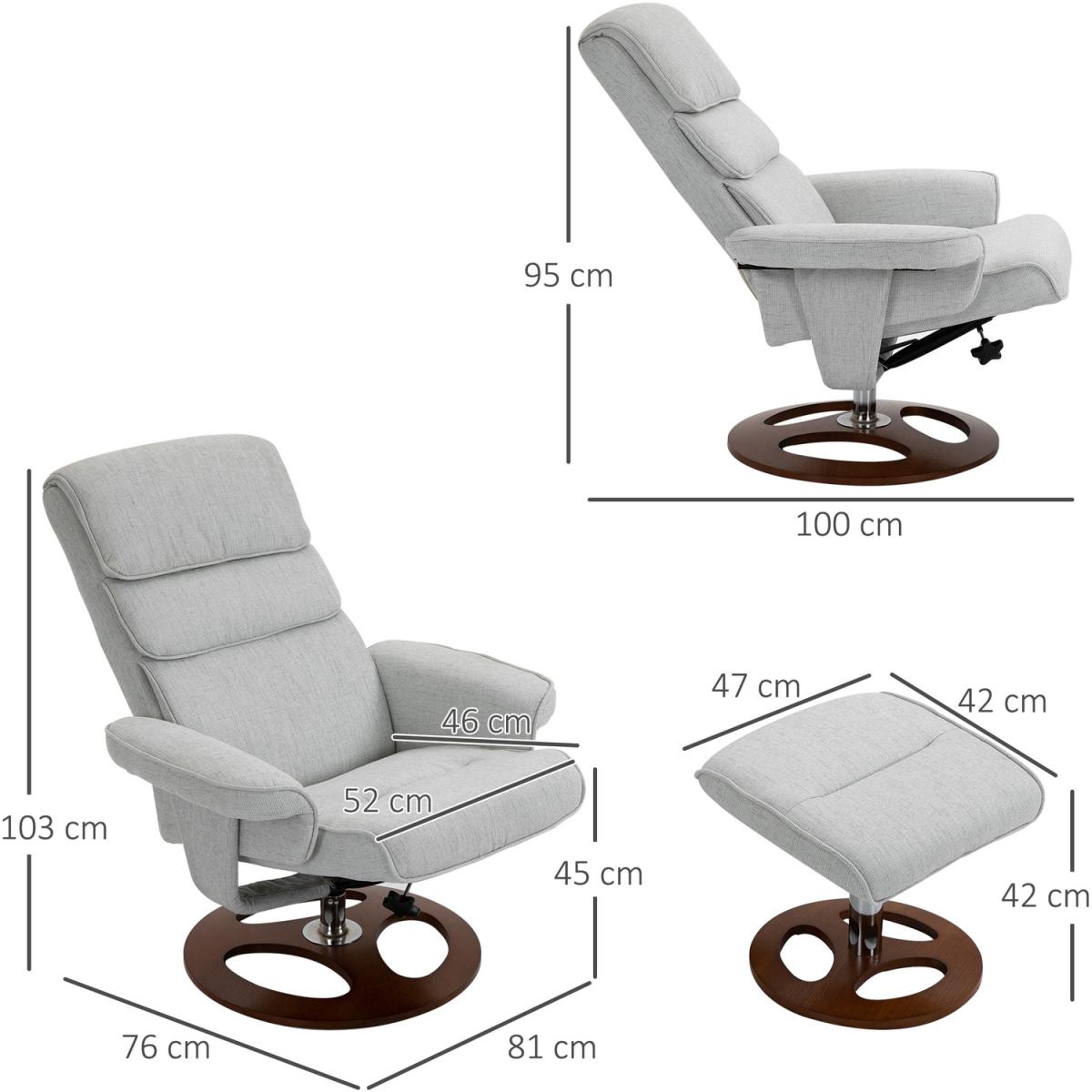 Take your relaxation time to the next level with this recliner chair and ottoman set from HOMCOM. In a soft, versatile grey, the chair is built with a solid wood frame and large base, supporting a weight up to 120kg for durability over the years. 8cm padding means you'll be relaxing comfortably. The chair back reclines to a maximum 120 - so why don't you lay back, put your legs on the stool, and relax?
